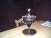 Blue Glass candy dish. This belonged to my great grandmother. very good condition. The symbol on the inside looks like a flower.