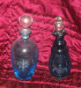 This blue glass decanter set has a gold etching and red "ruby" colored stones attached to it. The decanter, stopper and 5 "shot glasses" are Iin mint condition and was bought in Florence, Italy by my grandparents.