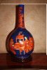 Looks to be a hand blown and painted type of maybe a powder jar??? It is blue in color the flowers painted on the top are white with green leaves and orange flower centers. The ring/closure around the middle seems to be made of brass and has a kind od S shaped closure. It is really pretty!!!