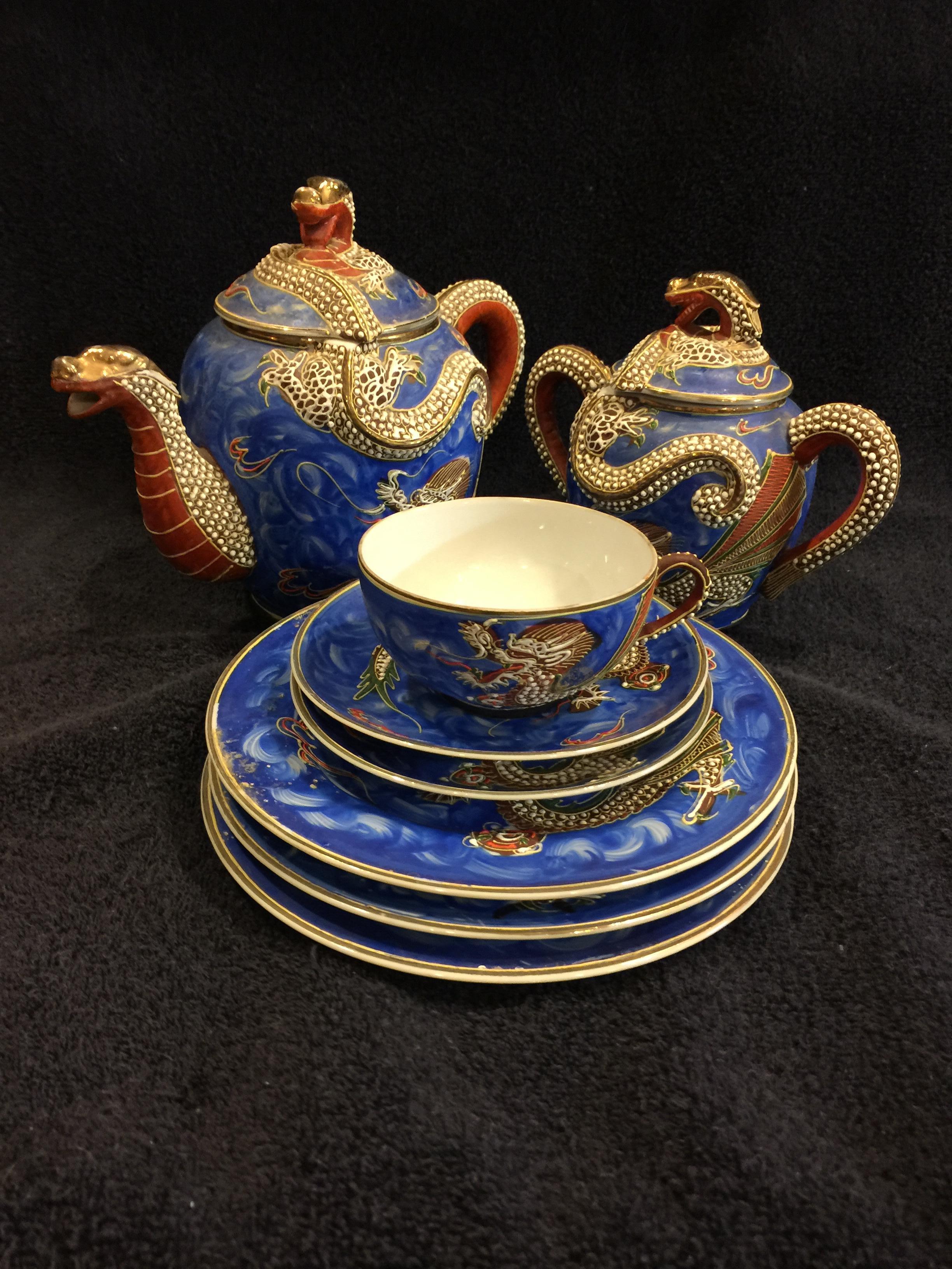 Blue Moriage Dragonware Tea Set with 8 pieces