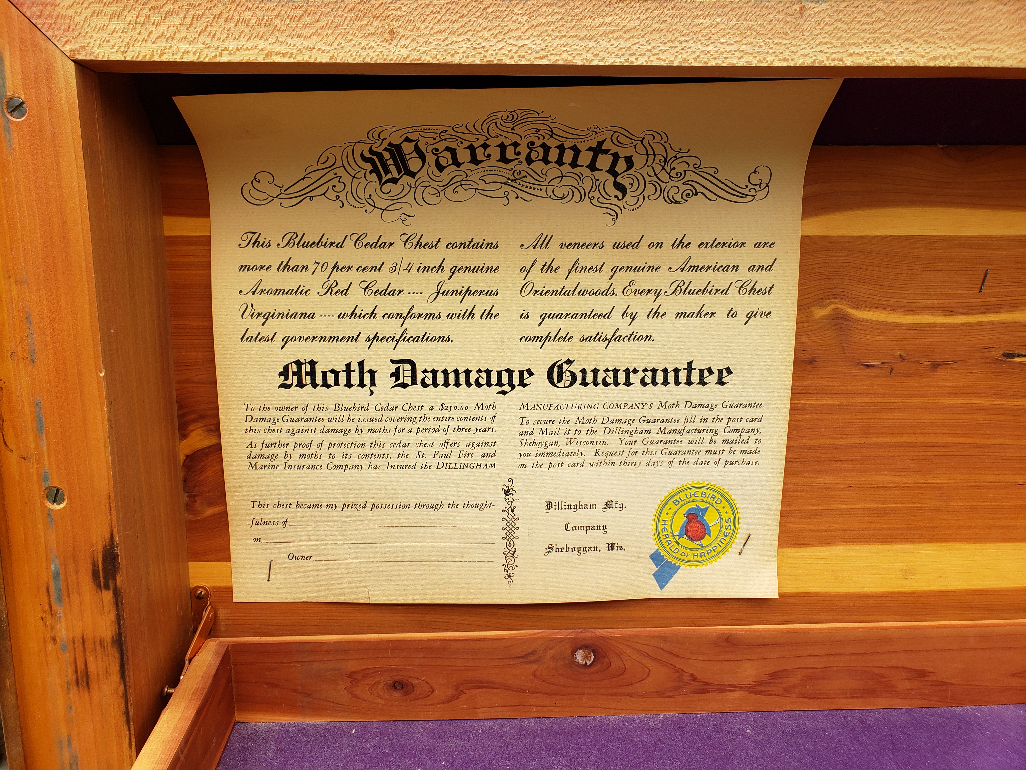 Bluebird cedar chest