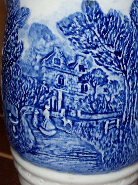 I purchased this at a flea market in Michigan. I don't know anything about it and would appreciate any information such as age and maybe the value. It measures approx. 6 1/2 inches tall and it is in excellent,if not, mint condition. The gorgeous picture is a raised,subtle 3-D.There are no cracks or chips whatsoever. Yes I'm interested in selling it if the price is right. Thanks!!!