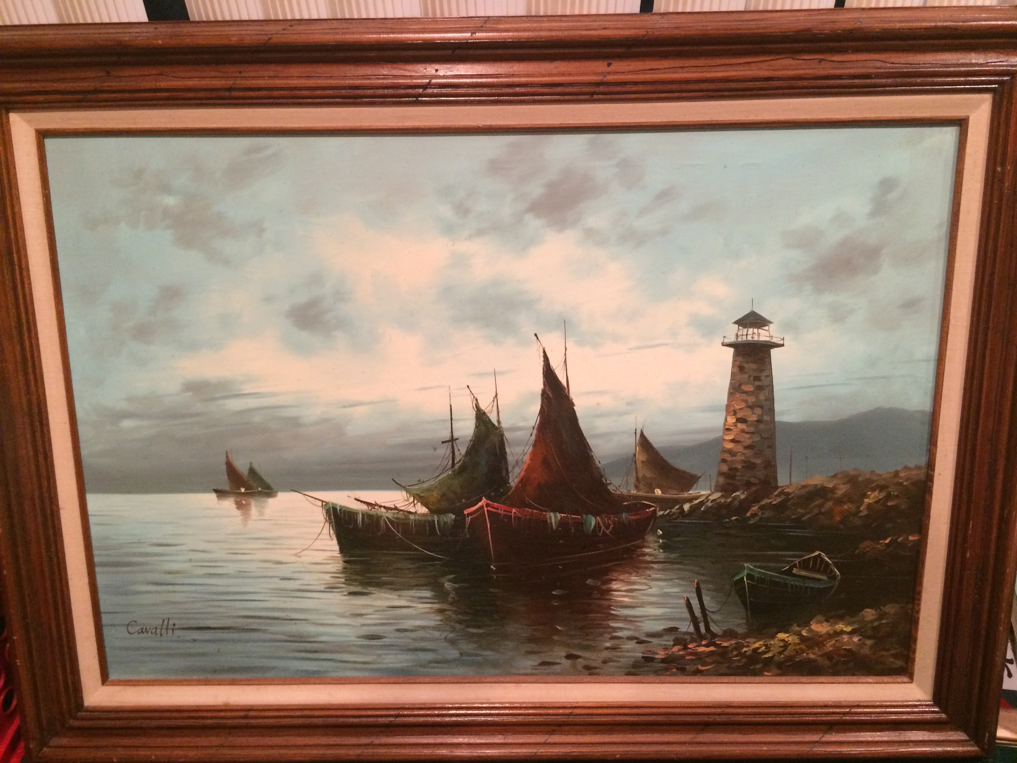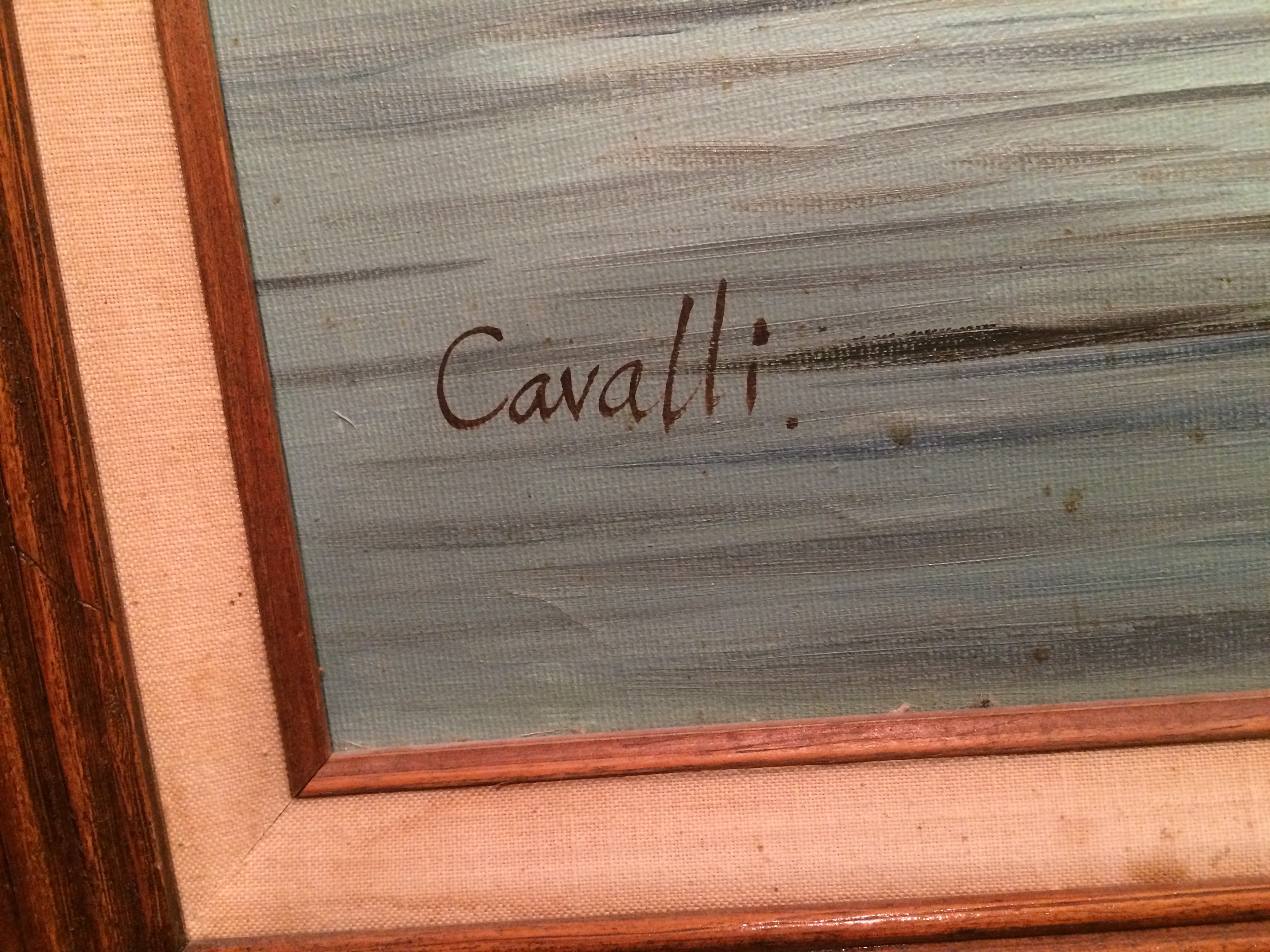 Artist of this painting is Cavalli. This painting was bought by the present owner in 1996 after being donated to Catholic Charities from the estate of mobster Carmine Gallante. He was reported to own many Cavalli paintings that were sent to auction.