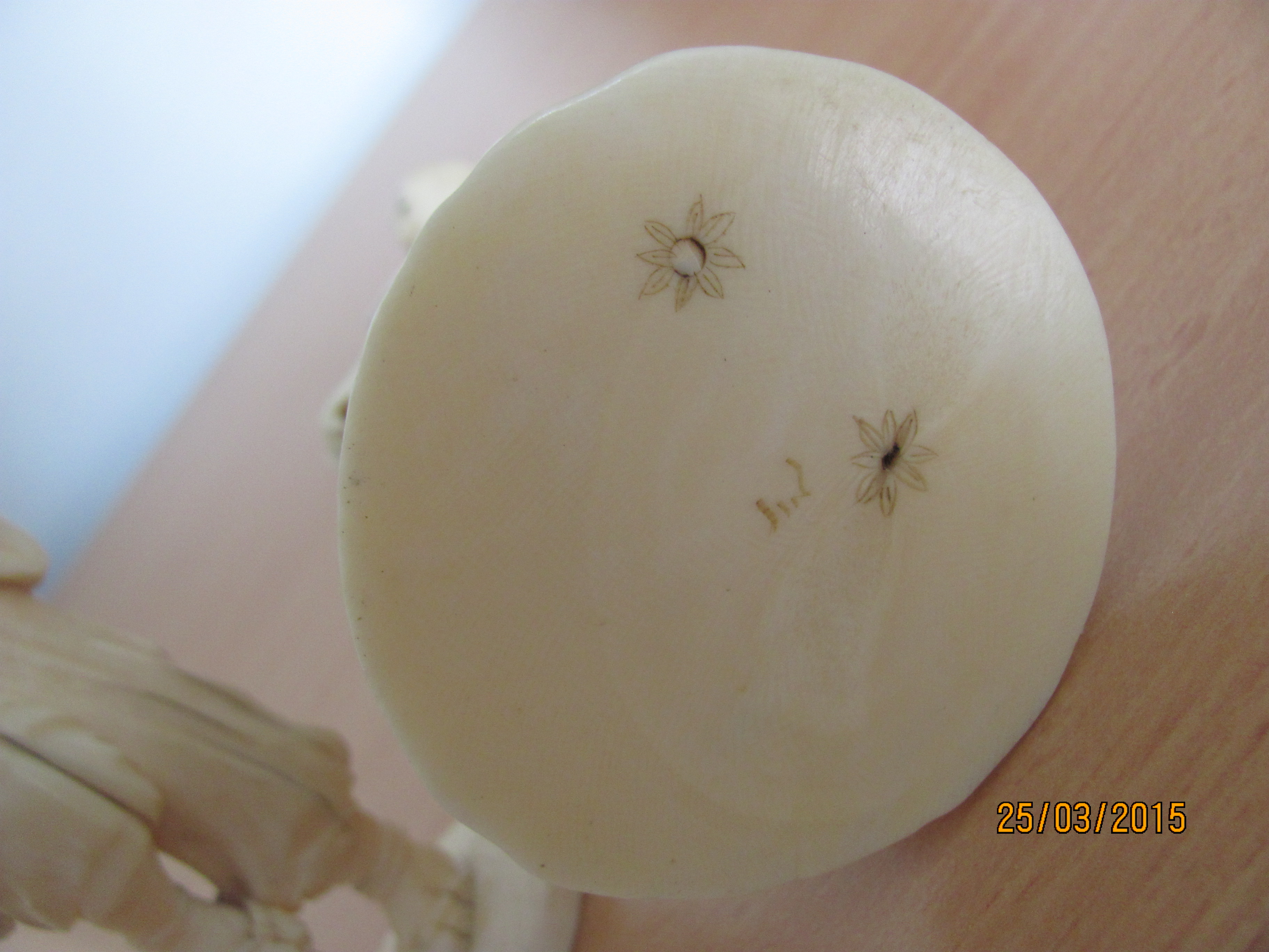 I believe they are carved from bone - though growing up I was told they were ivory - however I've since learnt they are bone as they aren't cold like ivory presents.