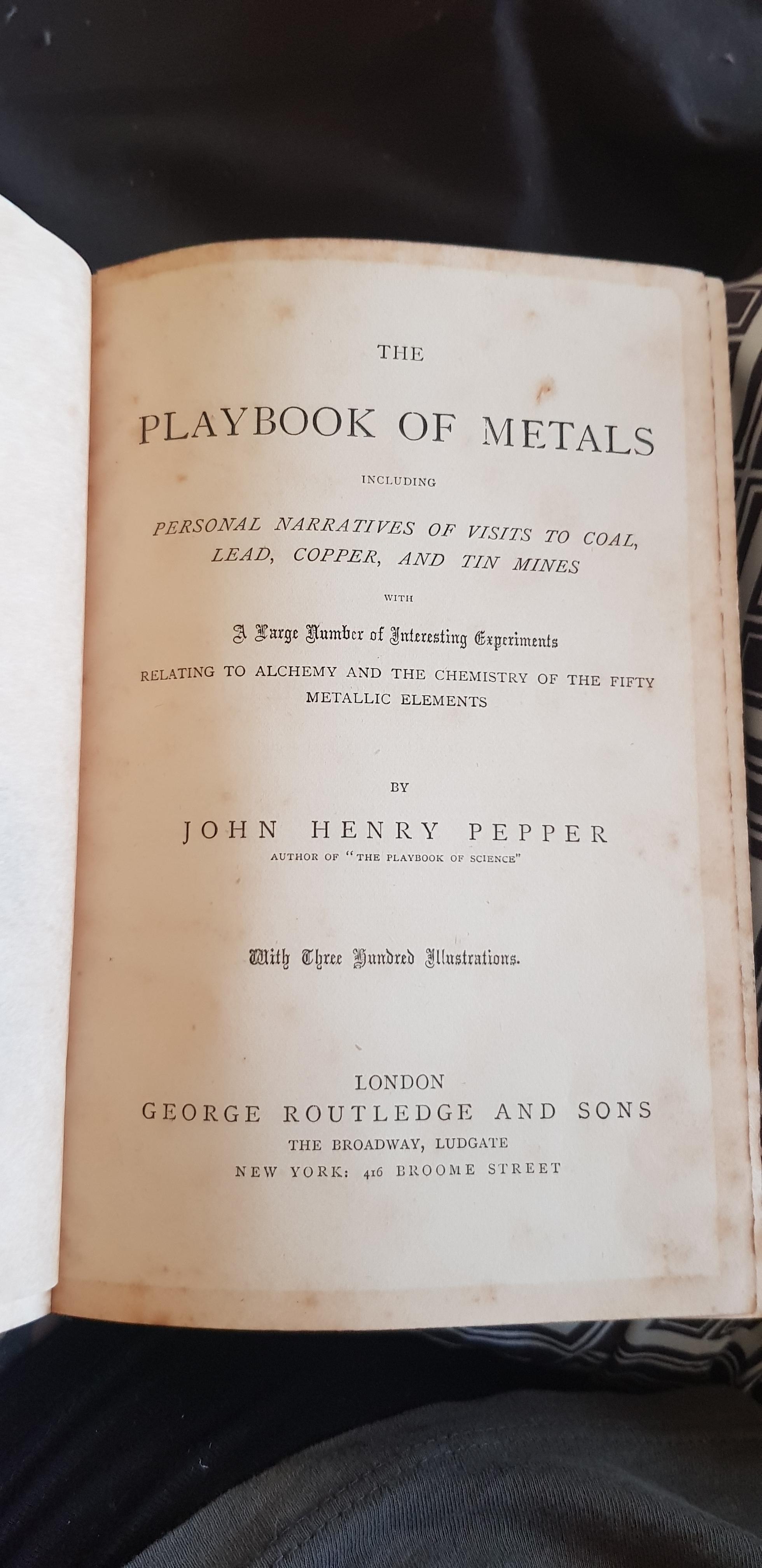 Playbook of metals. John Henry Pepper Including Personal Narratives of Visits to Coal, Lead, Copper, and Tin Mines with A Large Number of Interesting Experiments relating to Alchemy and the Chemistry of the Fifty Metallic Elements .. With Three Hundred Illustrations
