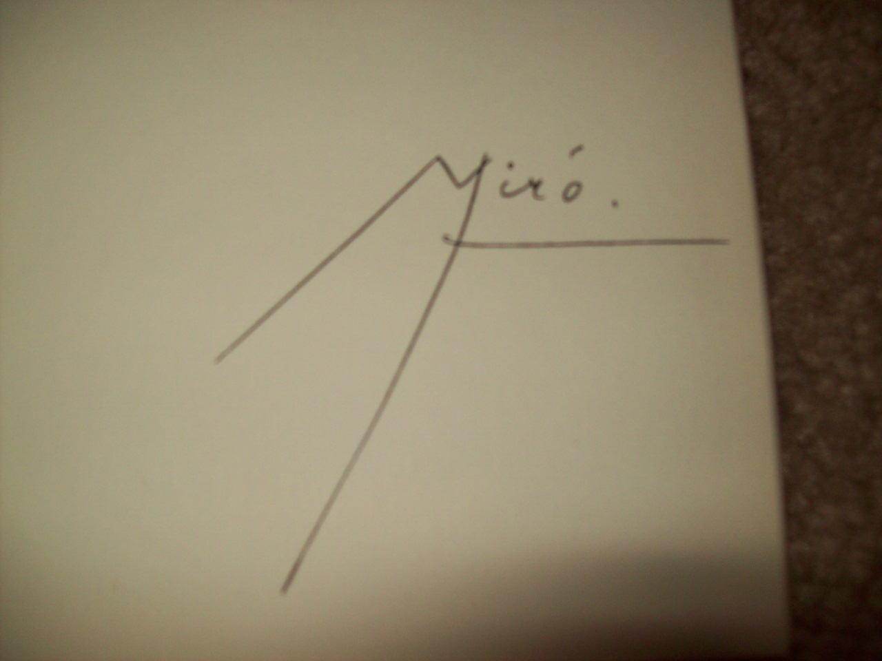 I assist a freind when he needs help cleaning homes and this home had many valuables left behind, the gentleman that had lived there had no living relatives to pass on his valuables too and goodwill was going to come to take the items from the home so I went through some of the things left behind. He had many peices of fine art along with fisrt edition books as I was going through many of the books he owned, he was an artist himself. I noticed a signiture in one of the books intitled "Miro" by Walter Erben 1959. It is signed Miro... Here are some photoes of the book and signature.
