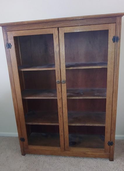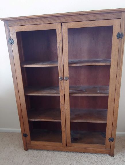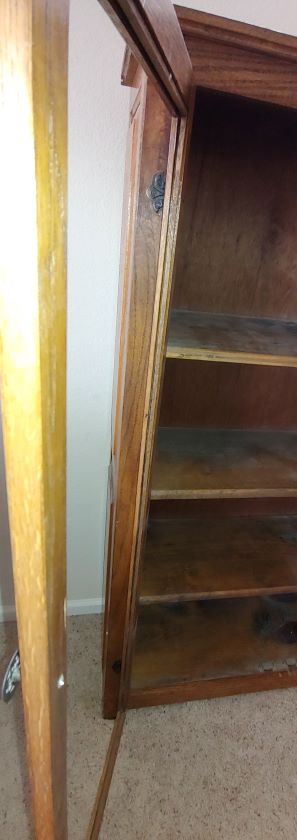 I do not have history on this piece. It was purchased from a auction and given to me over 18 years ago. It had magnetic clips to keep the doors closed. The glass in each door was broken and removed long ago. I am looking for help in identifying this piece including what it is, age and value range.