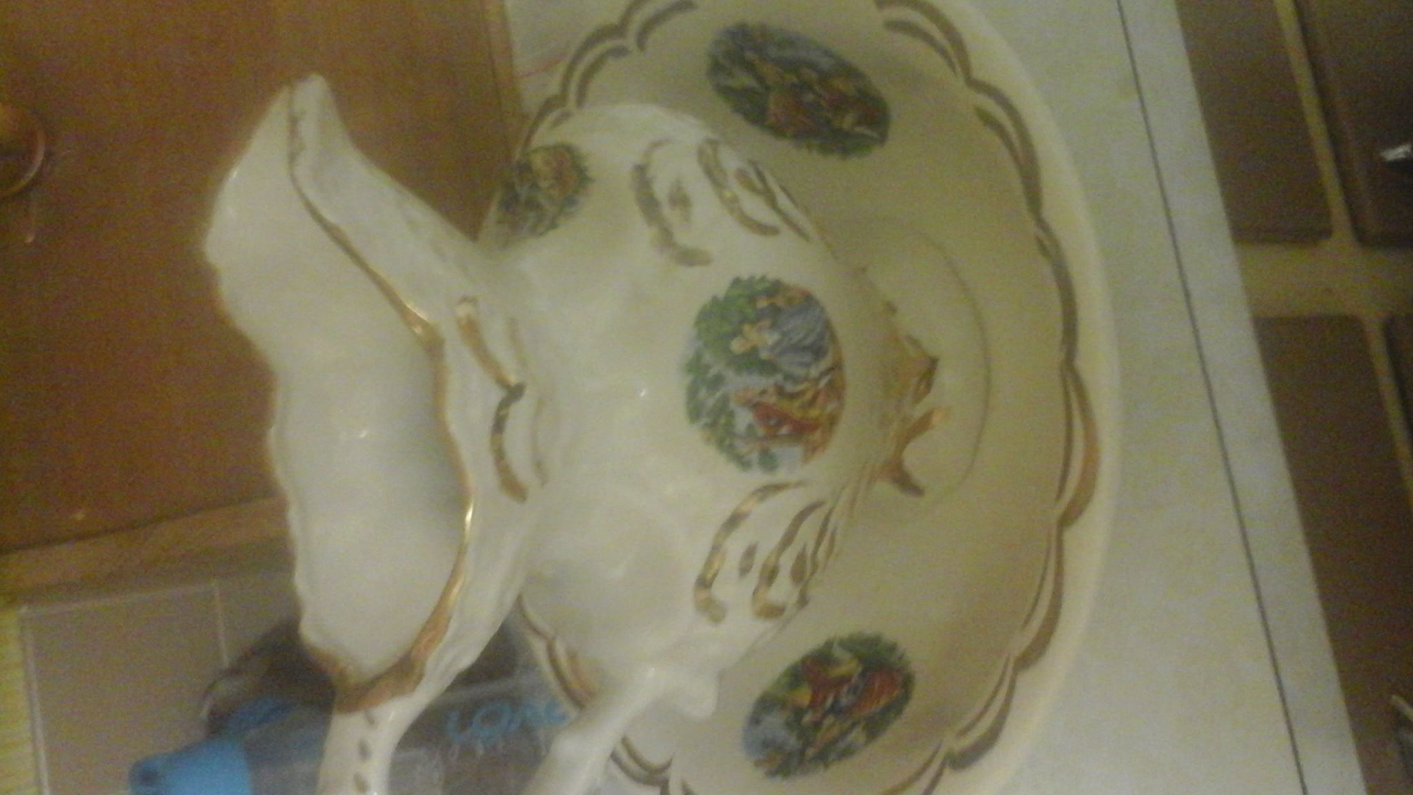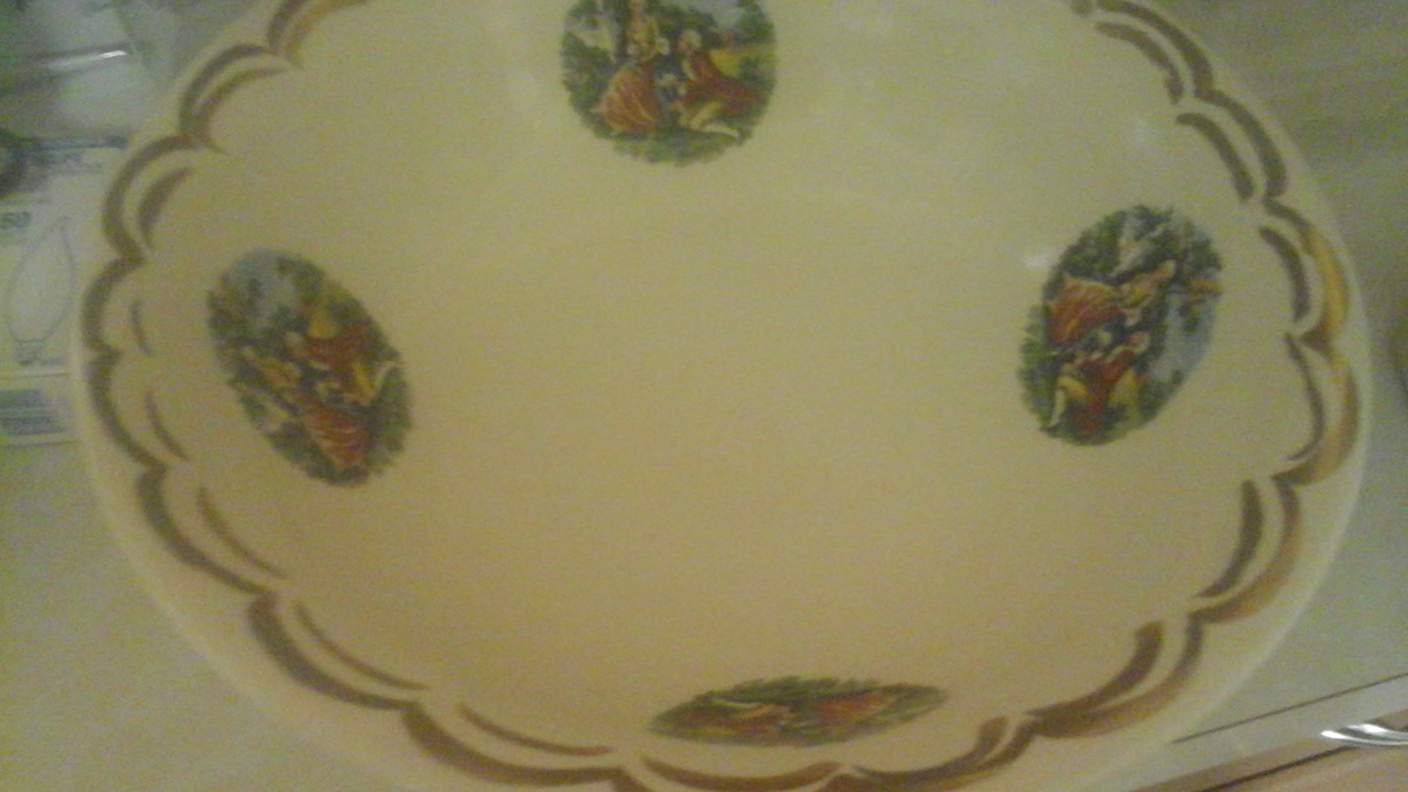 Gold trim , victorian couple design on it, 1868 on bottom of pitcher