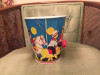 140cm high bowl with etal handle. Made in England engraved in metal rim, with 4 icons above,