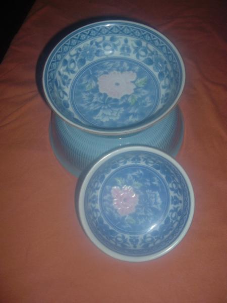 There are no cracks or chips on either bowls, but the 2 biggest bowls are slightly faded I think its from being stacked on top of each other for many years.
