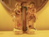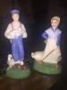 Boy and Girl Hummel figurines approxamately 5" tall. seem to be made out of a clay and painted with glasslike porcellan finish. Have been broken at neck and reglued. Minor chips.