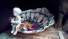 A large statue of a Chinese boy holding a duck. 14.5 x 10 x 10