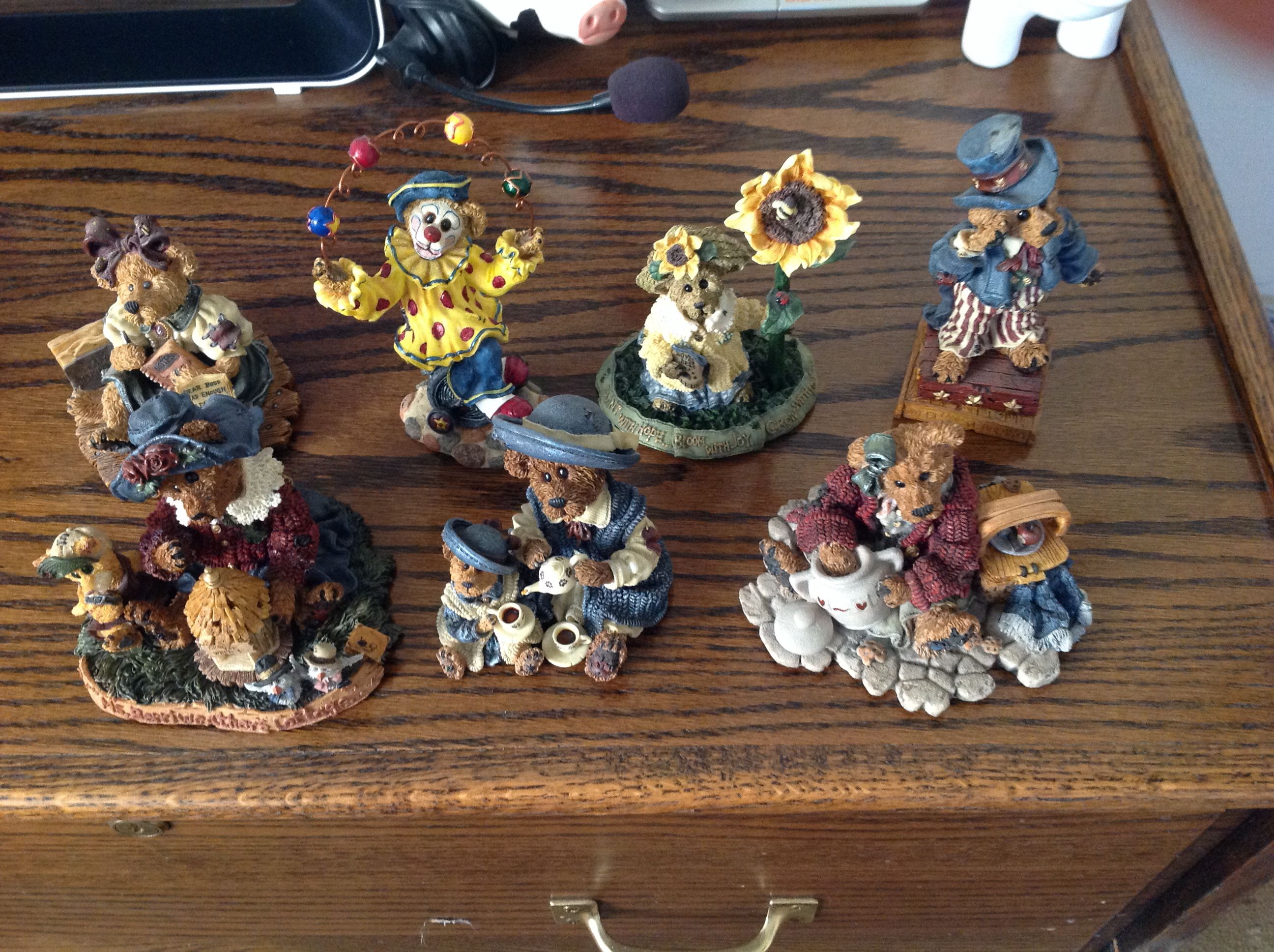 7 Boyd's Bears figurines puchased as a member of Loyal Friends of Boyds, private issue. The lot includes 6 Bearwear pins.