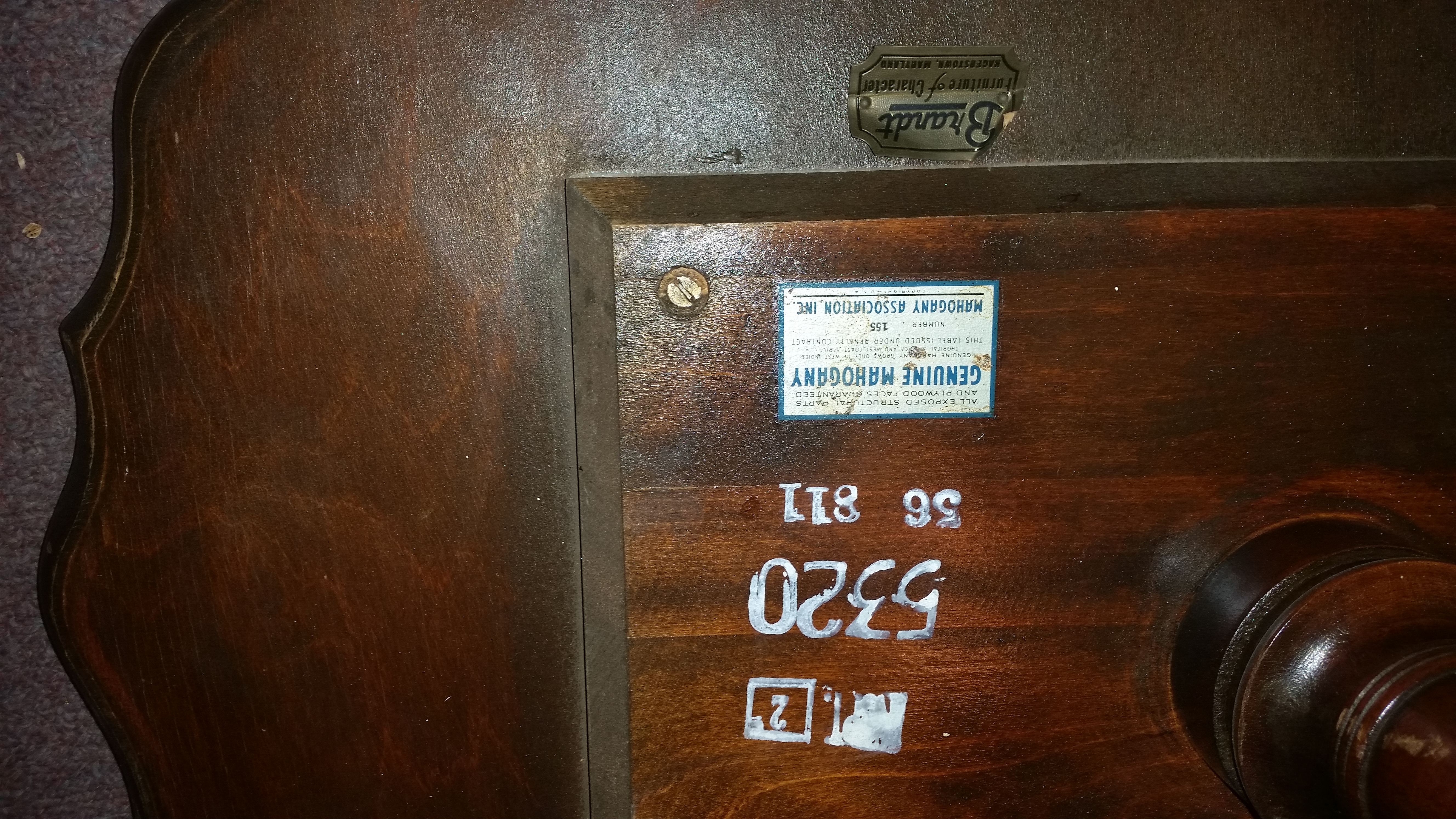 Genuine mahogany association sticker.