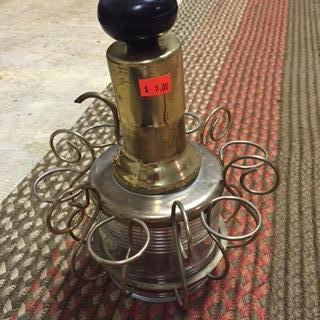 No markings that I can find. I found similar items, but nothing with the exact design. I am pretty sure is is a shot glass dispenser, but no idea of age, maker or value.