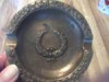 Flip brass lid ashtray or dish of some sort with a wooden handle. On the back a small imprint that says India 9595
