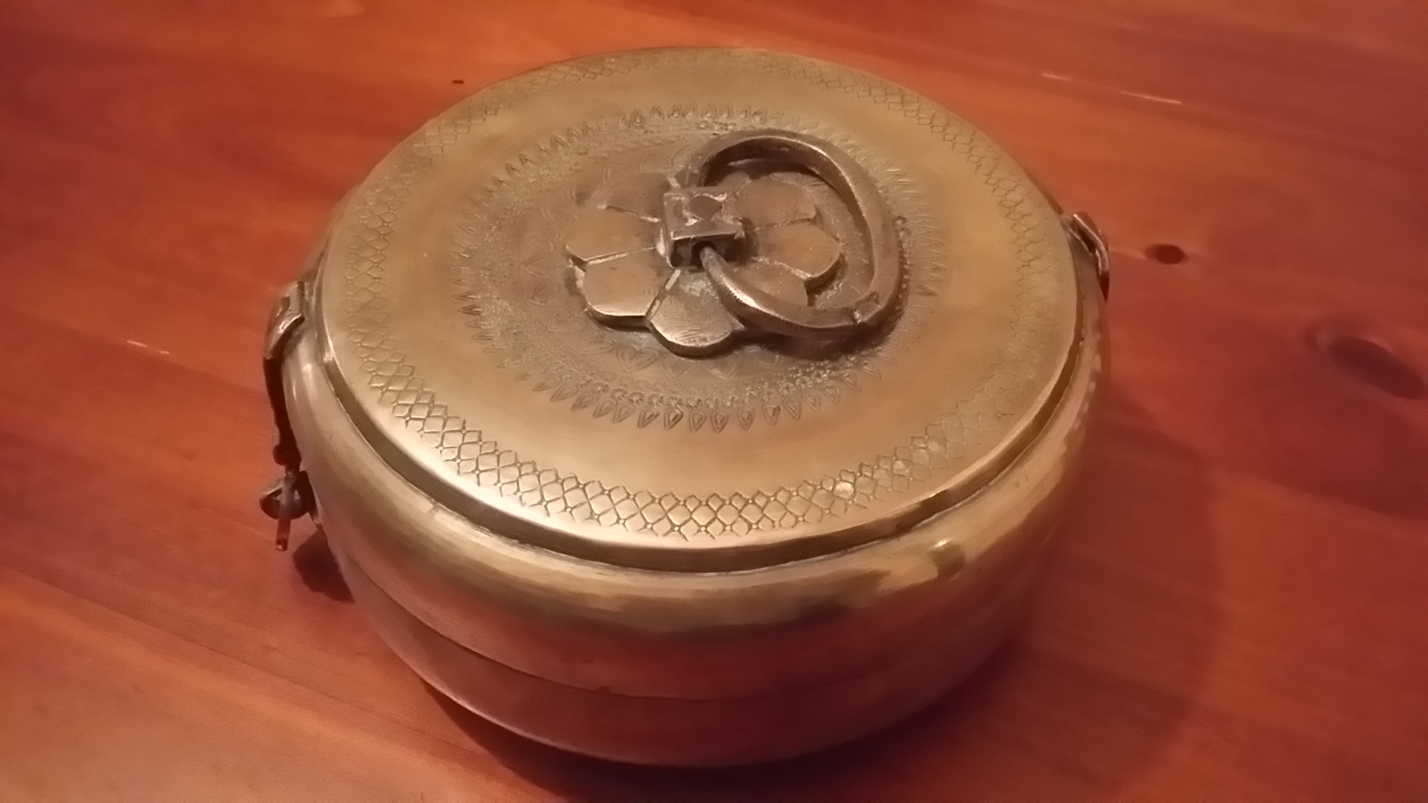 Has pattern rings around the lid that include small criss crosses ,leaves, rings and hearts