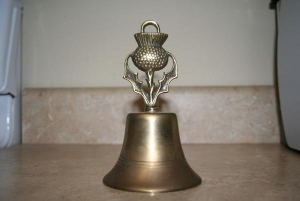 Brass bell with thistle on top.