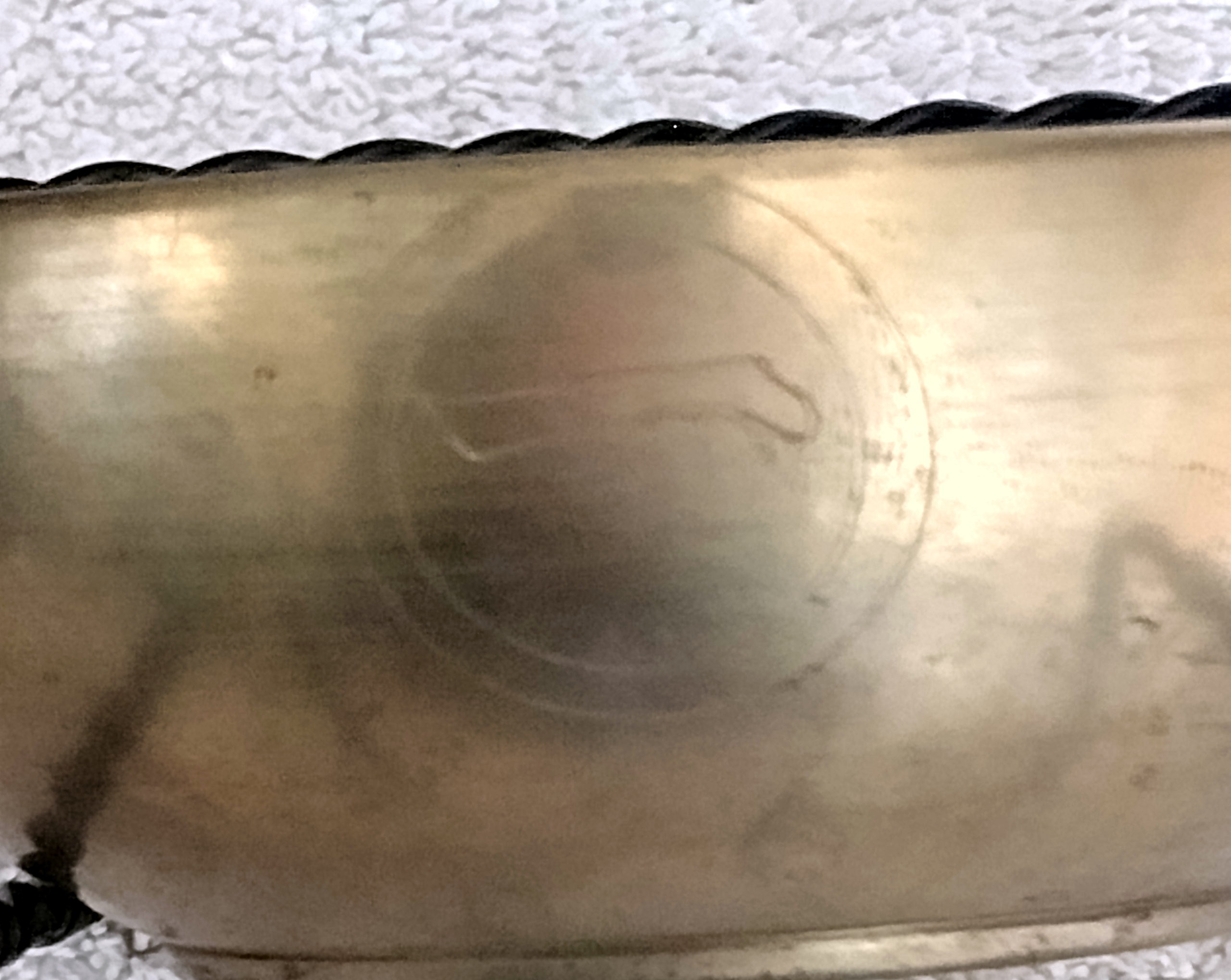 While not rare, this type of brass bowl holds value for its historical and cultural significance, especially if tied to Japan’s post-war era. Without more detailed identification of the symbols or provenance, the value remains approximate: