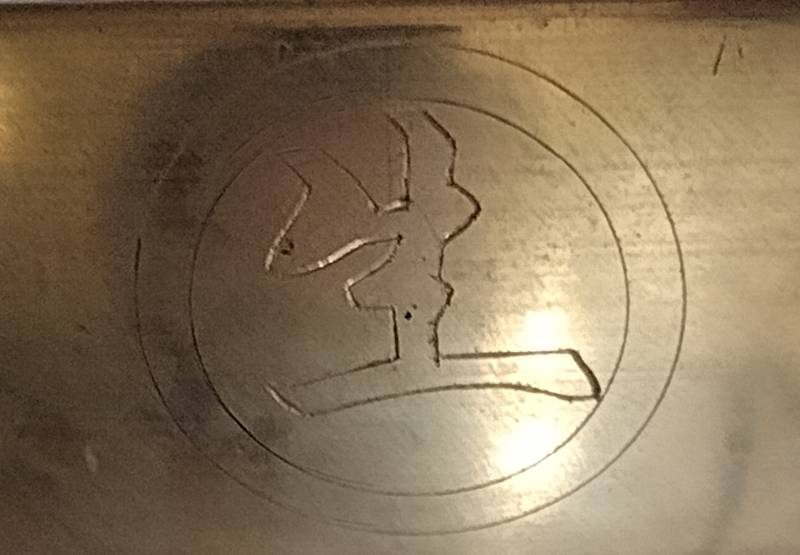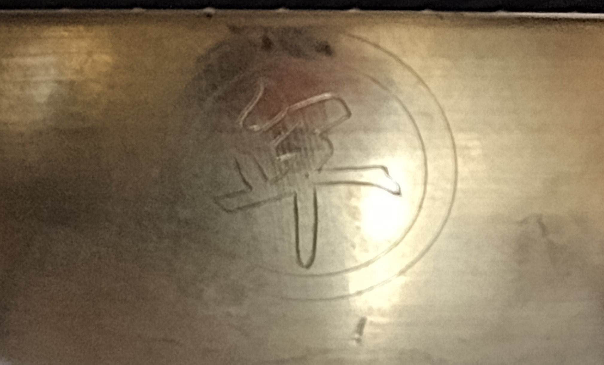 During the post-WWII period, many Japanese artifacts, including sake cups and bowls, were crafted as functional or ceremonial items. Brass bowls like this were sometimes engraved with symbols or family crests (kamon), and others bore commemorative markings. The markings on this bowl could represent a family emblem, a military insignia, or a specific event or purpose (e.g., a celebratory or ceremonial item).
