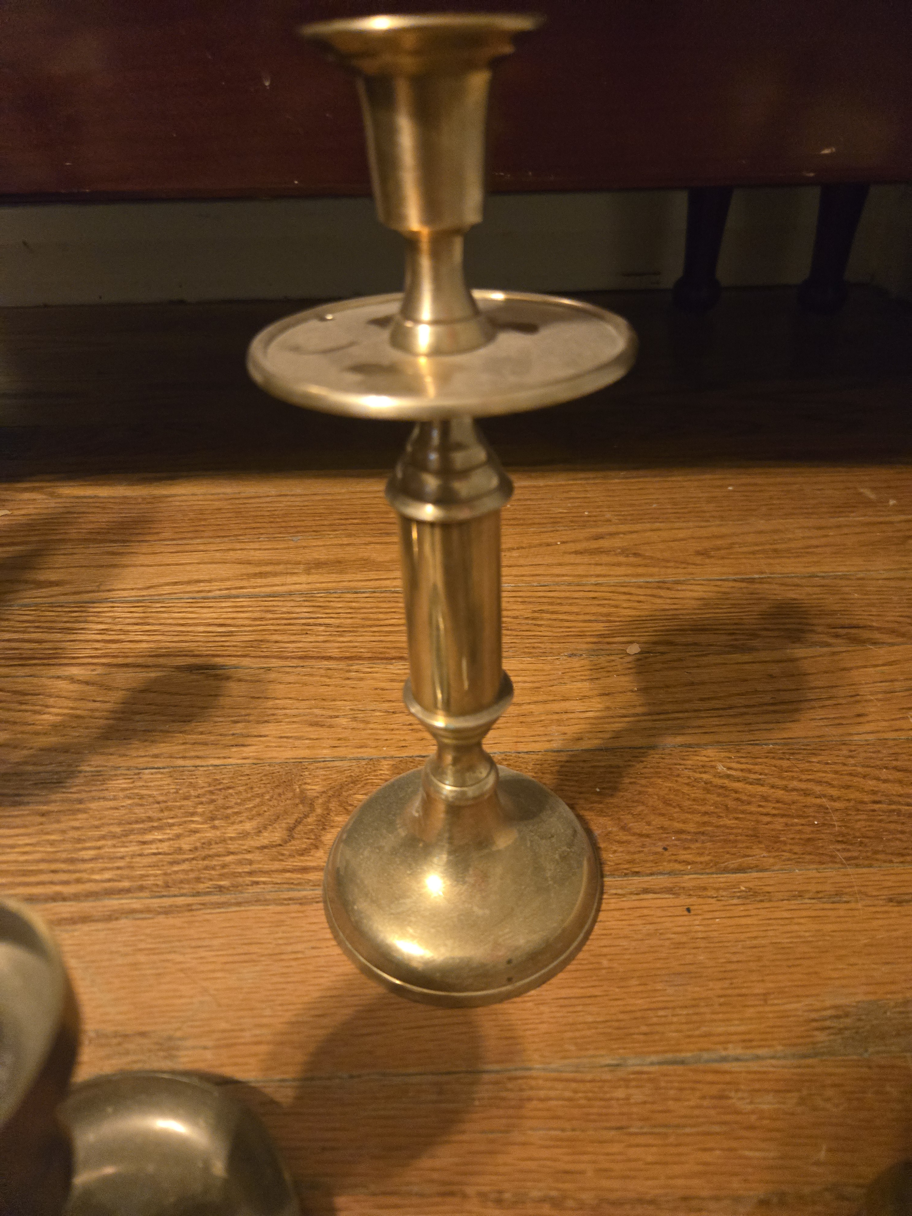 Interesting Facts: Brass candle holders have been used since ancient times, serving both functional and decorative purposes. The warm glow of candlelight has always been favored in home decor, making these items not just practical but also atmospheric. Additionally, the patina that develops on brass can be considered a desirable characteristic, adding to the item's charm.