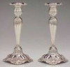 There does not appear to be a makers mark on the back of these chambersticks, however there are 3 lines at the end of the handles (on both) that do not follow the pattern of the candlesticks. There is a circle in the middle of the drip pan and it has 3 arches extending from it. All three arches have a Fleur de lis centered in it and something seems to extend from the bottom of the symbol. In between teh arches are what appear to be possibly roman numerals...1 M maybe, an X, 2 smaller V's and I cannot tell what the other is though it appears to be another M but it would be upside down of the others. Turning it the same way as the others it appears to be maybe an intwined F and R but that is really a guess. The pan and handle is 1 piece. They are not sodered together and appear to be made in a mold. The scalloped edge is uneven and the teeth around the edge are not the same size. Close...but the edge appears to be done by hand. I am at a loss. I can not find these any where on line and lack the knowledge of antique terminology to really begin to know what to even seach on these.