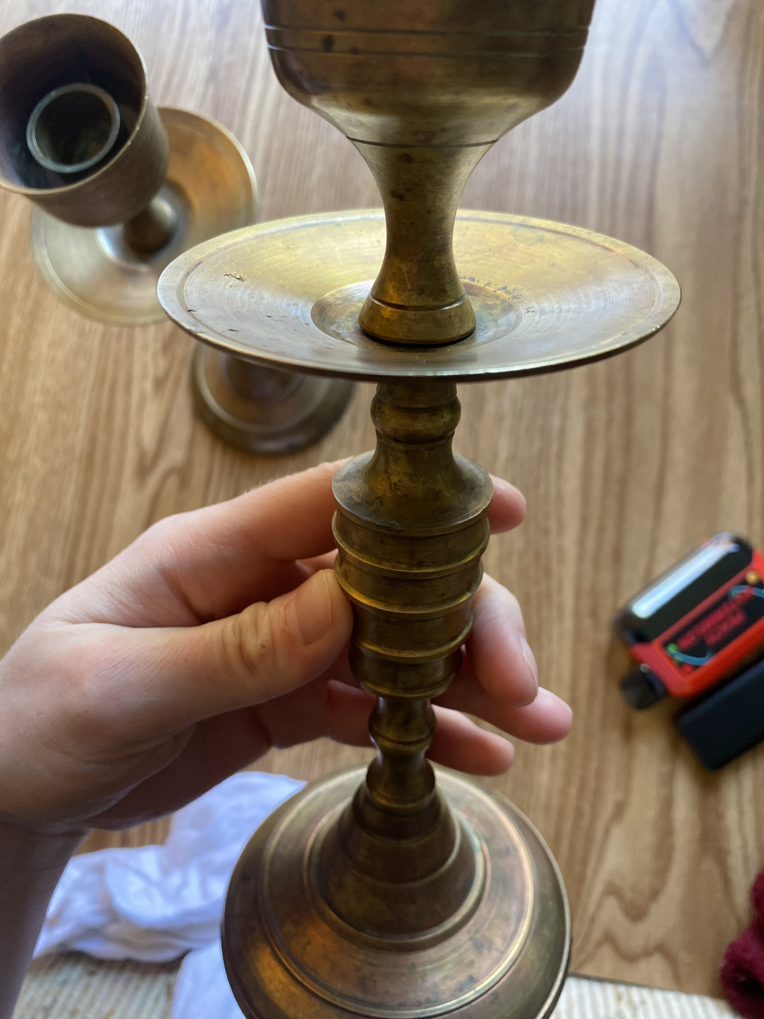 Brass Candle Stick Holders. Dating to Mid-20th Century. Unlock the full appraisal for complete details.