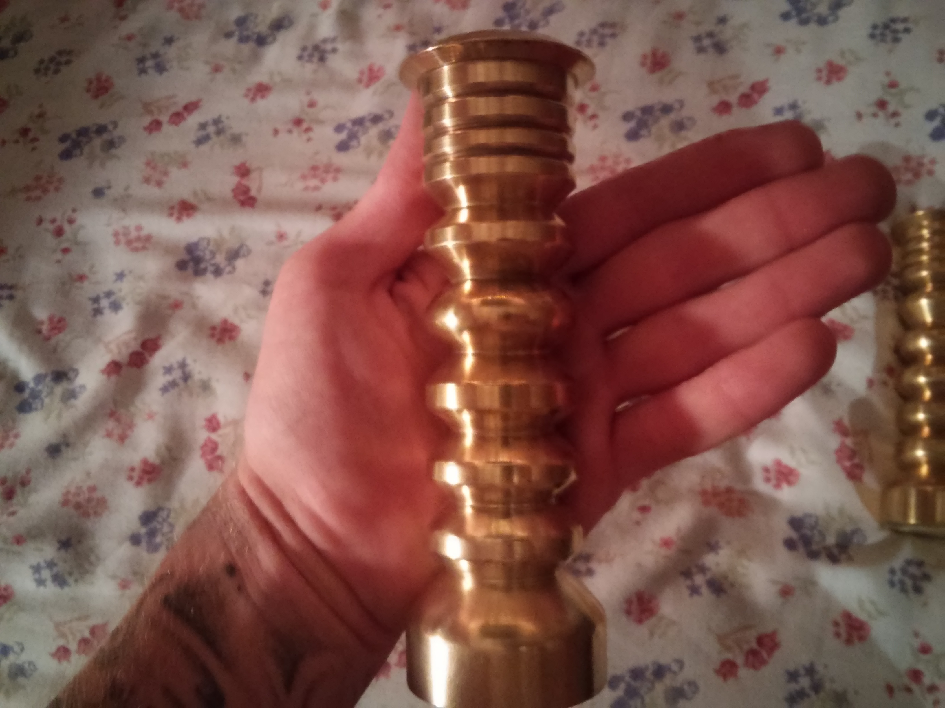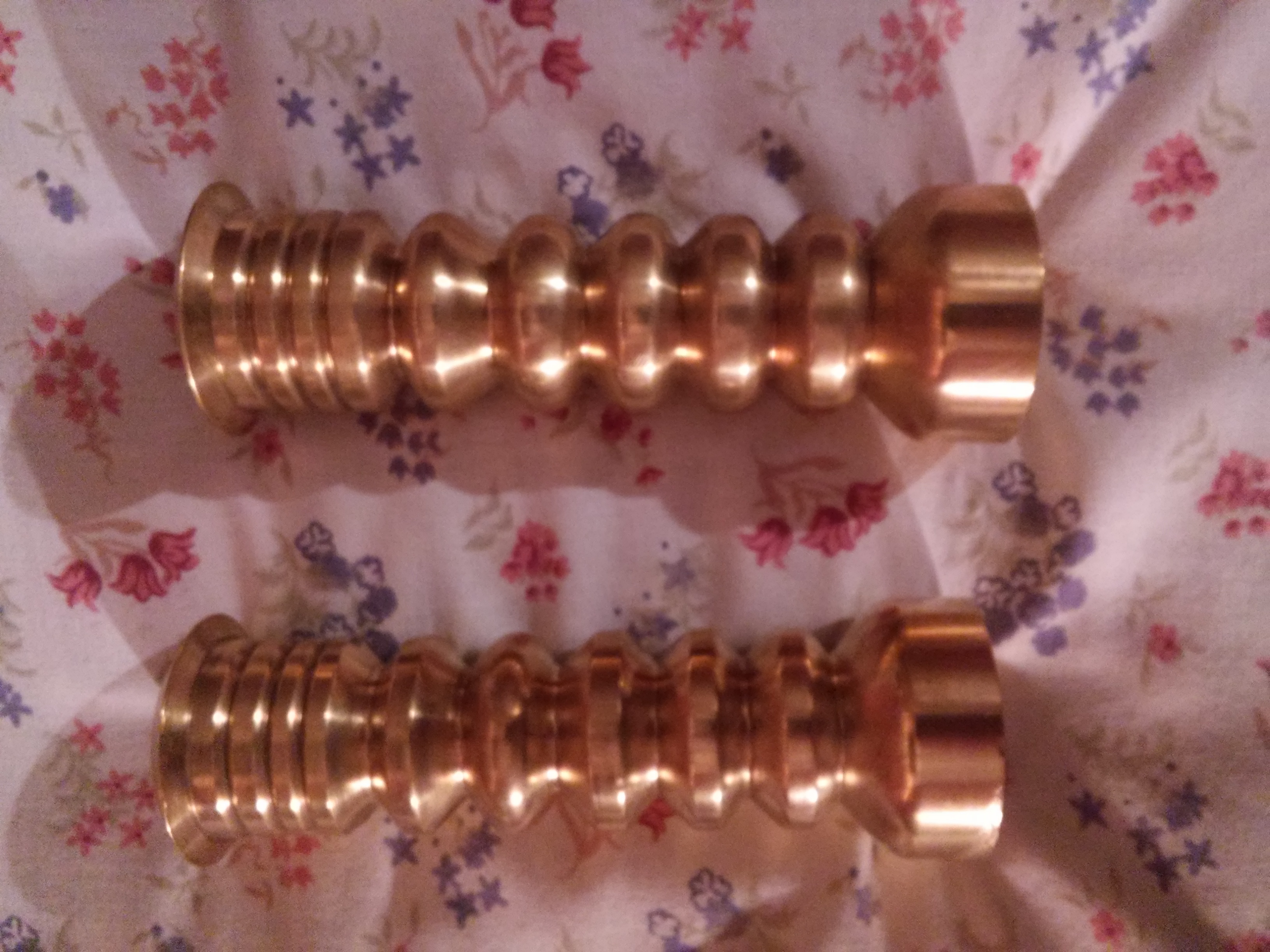 6 inches tall, solid brass. About 2lbs each. No markings anywhere.