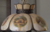 Brass and glass ceiling light removed from a property which I recently moved in to. I have no idea of the age or history of the item. There does not appear to be any writing or markings anywhere on the light. It takes a modern bayonet light bulb.