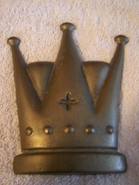 (4) solid brass crowns - show age (not cleaned), 2 tapped screw holes holes in each (in back)