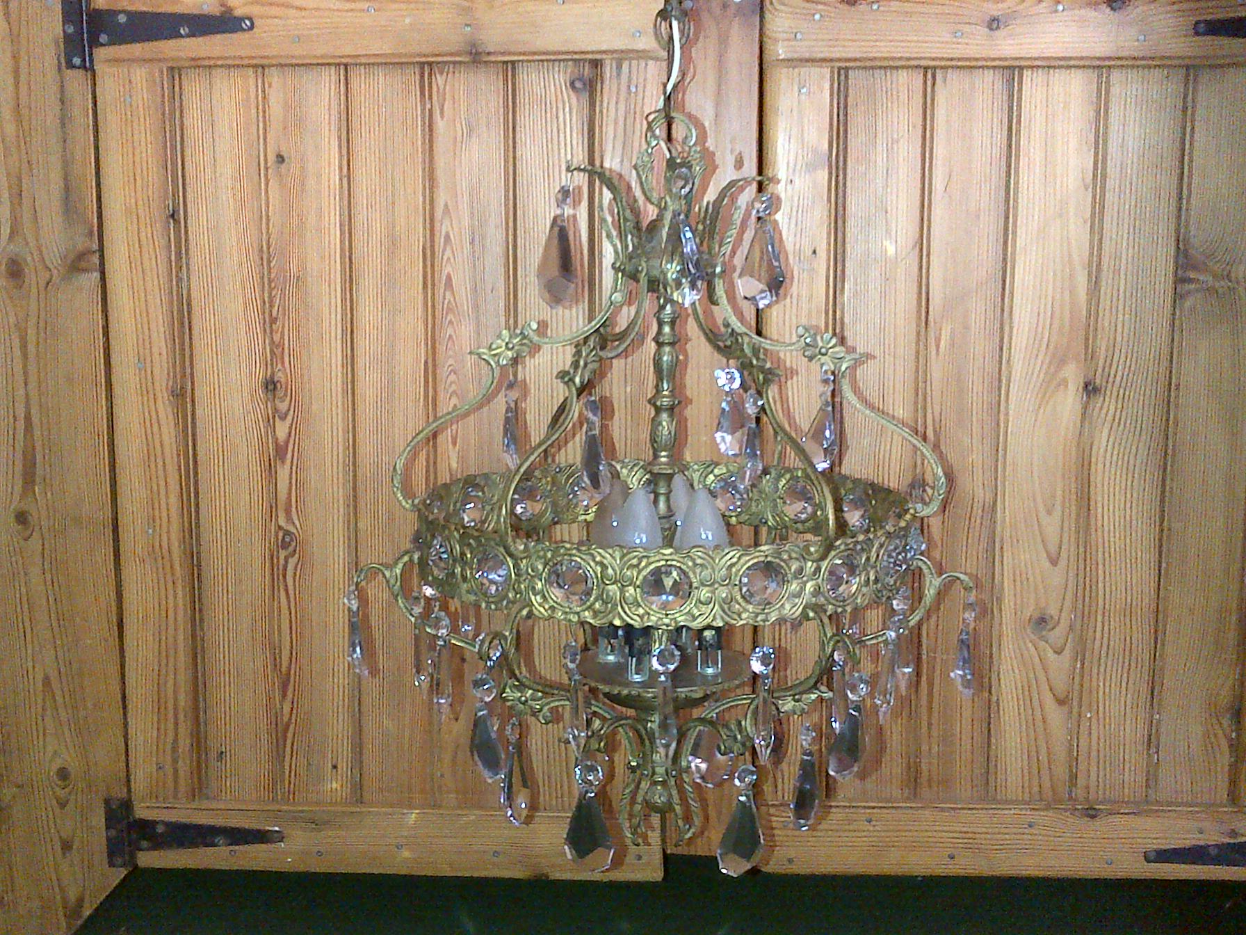 I got this brass and crystal chandelier from my great aunt so, I have no clue where it comes from. I checked for a mark or anything that will say who made it but found none.