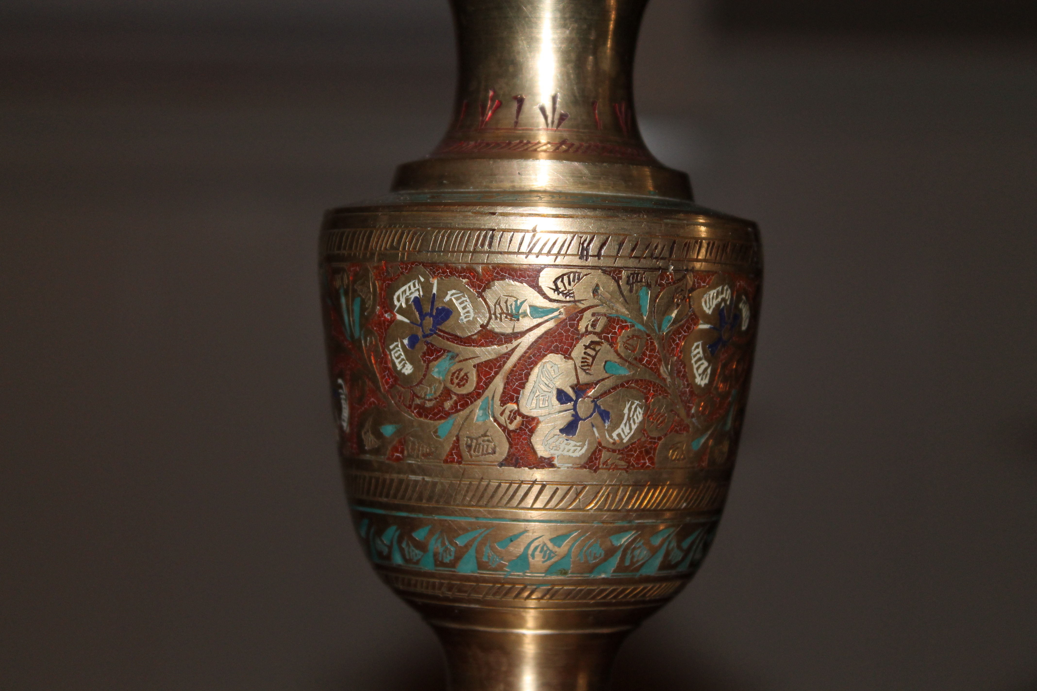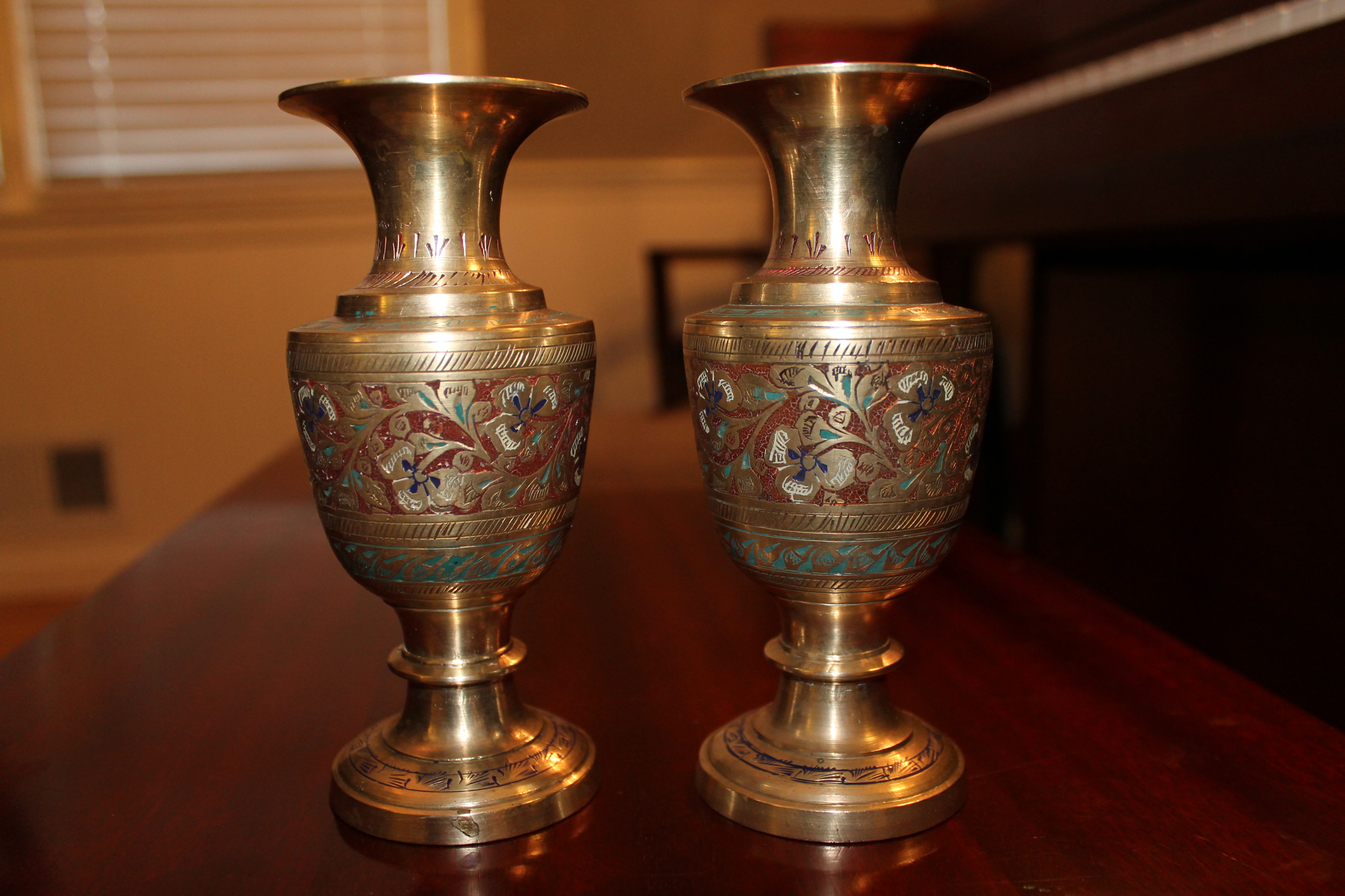 Brass Etched Painted Vases