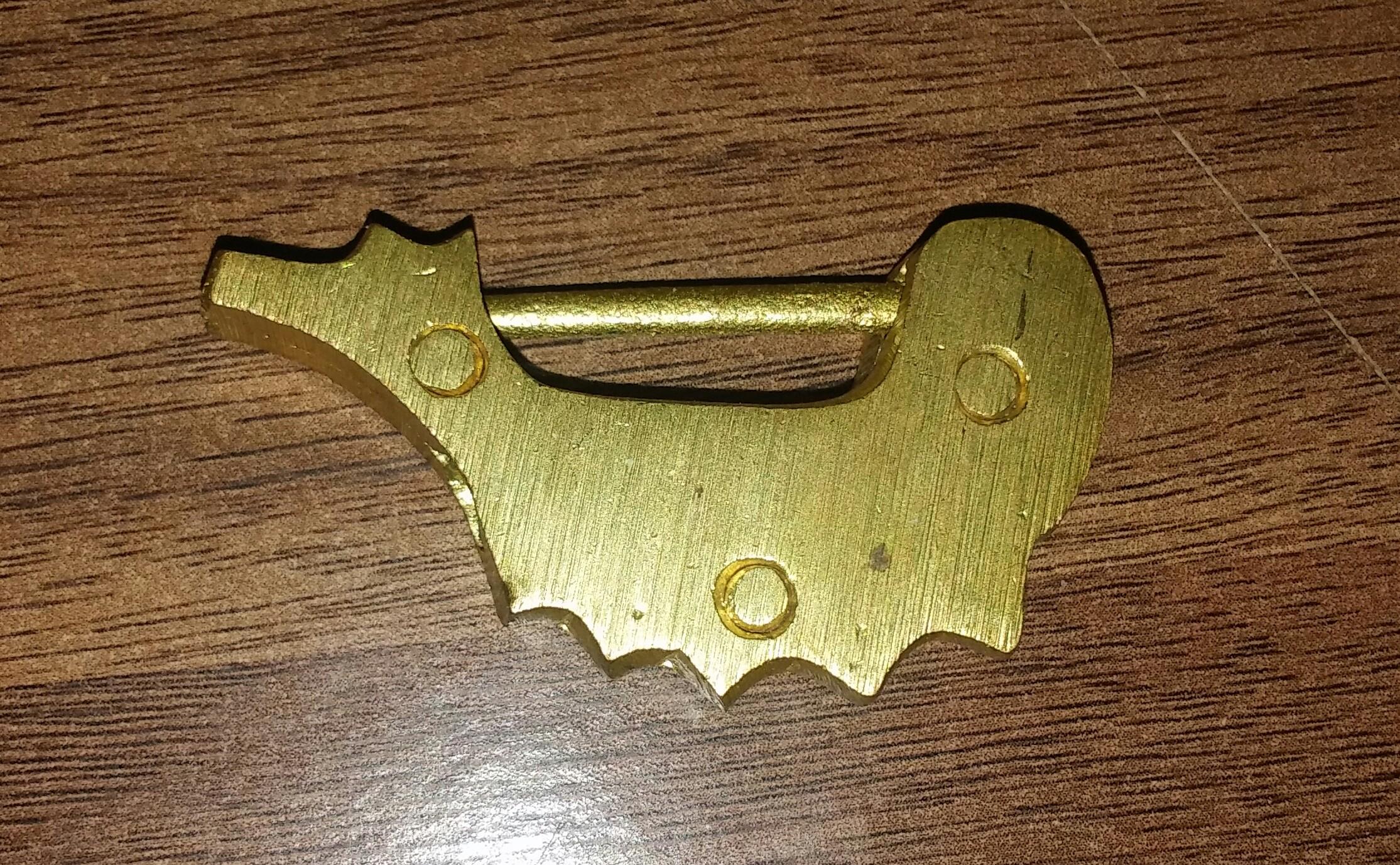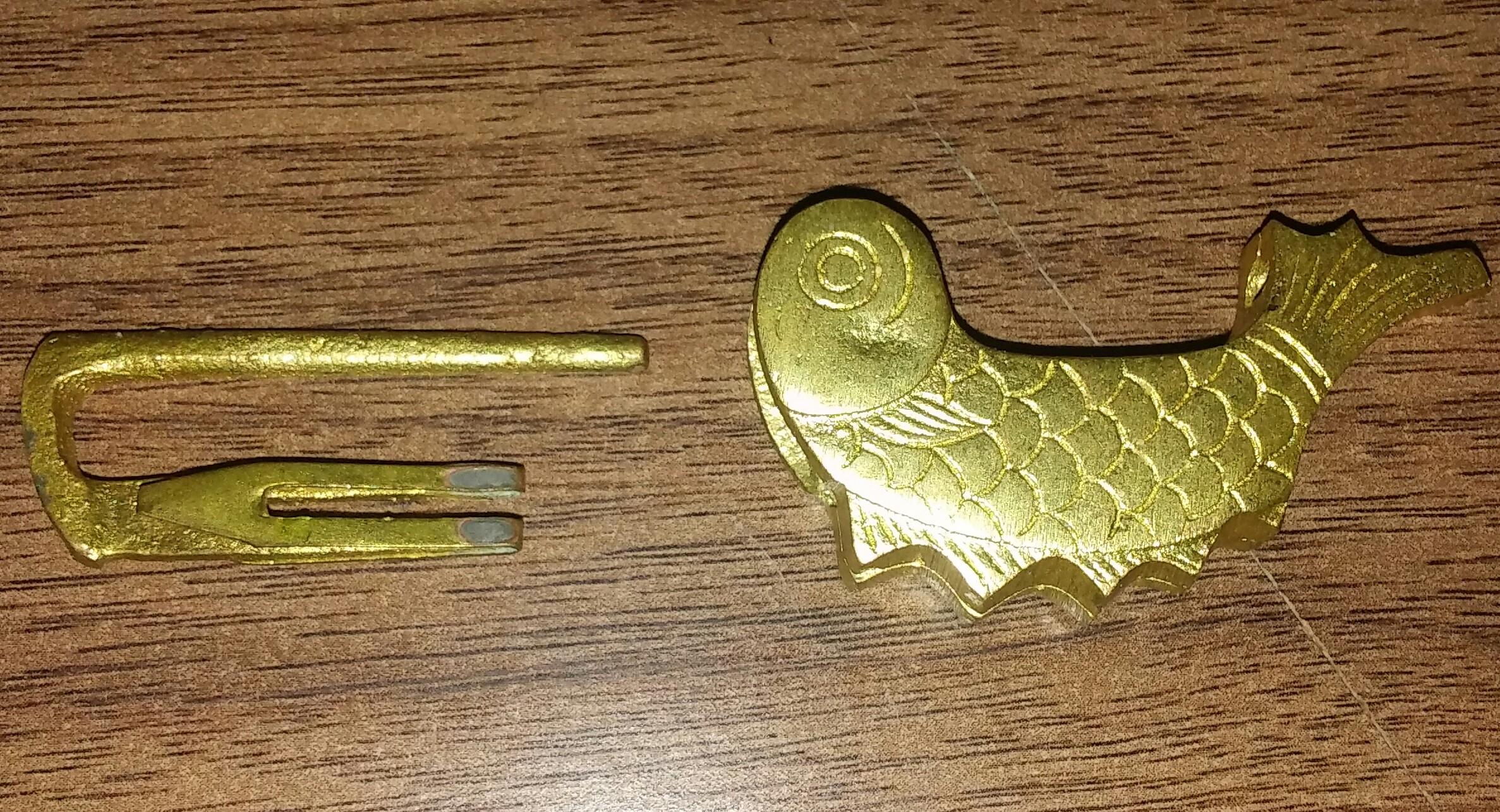 It was a gift given to me from my mother. She had found it at a thift shop and bought for $2.00 and it was a good buy. Its so shiny and unique. I recently did some reasearch and found out it was a brass fish hook with comes with a pin, lock and key. I do not have the key, just the pin and lock. I was hoping to find out more about the orgins and value of this antique.