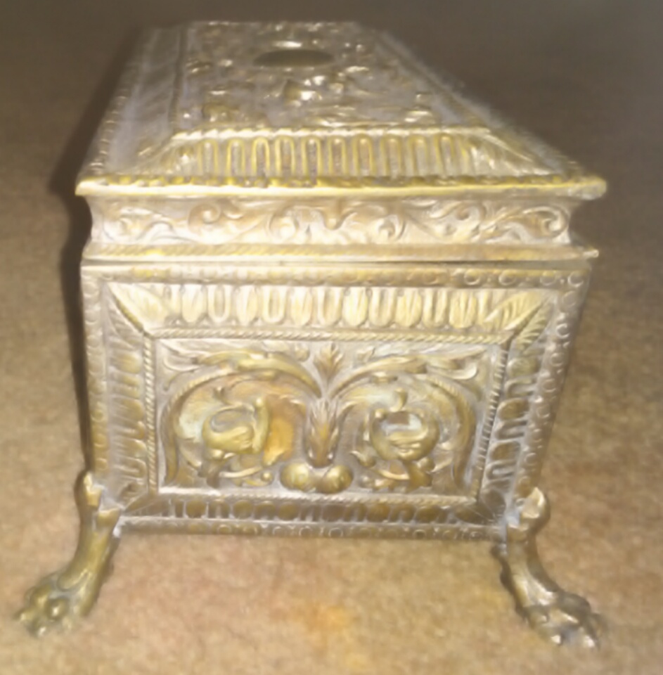 I have no information on this item. Would appreciate any information anyone has. I do know that it is solid brass with a handmade sterling silver base plate and handmade lock. I have the original key.