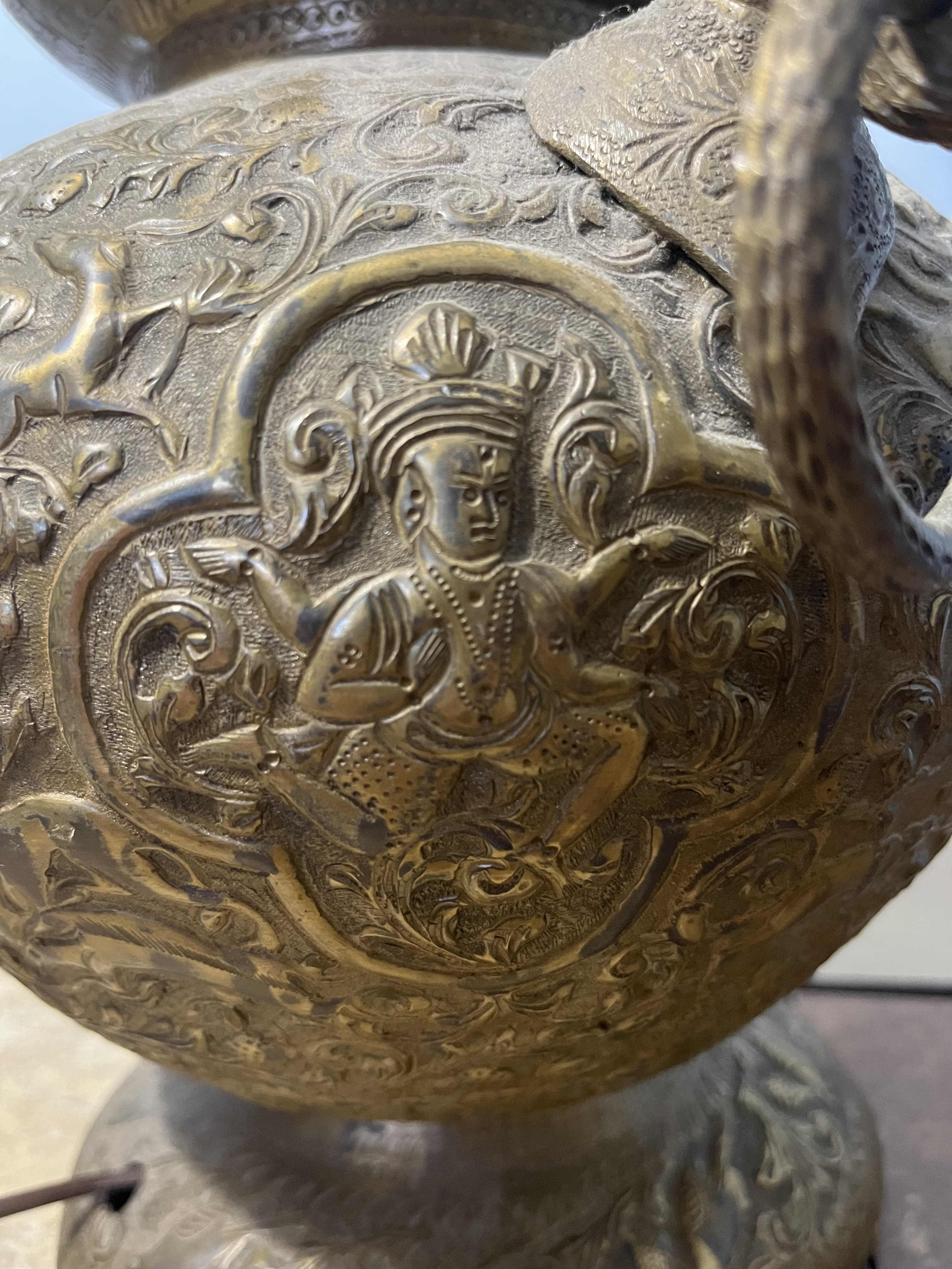 AI Appraisal: Brass lamp covered with Hindu Carvings