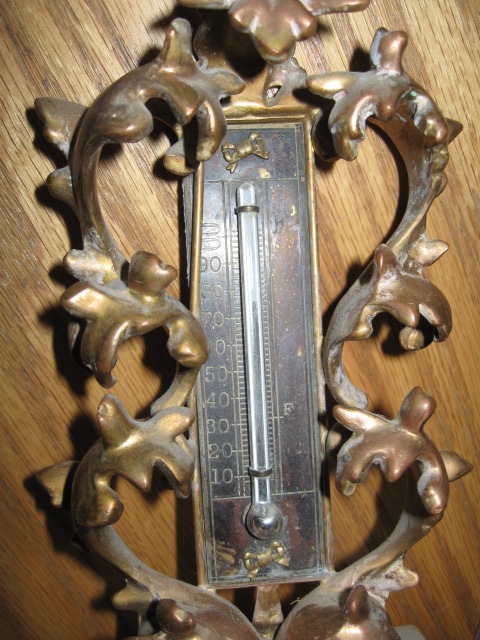 This thermometer sat in my father's barbershop in the 50's; I have no idea where he got it. It is brass with a marble base. Mercury-filled thermometer. It is almost 9 inches high. Brass is cracked at the top left side. No maker's marks of any type. Any ideas about age or value?