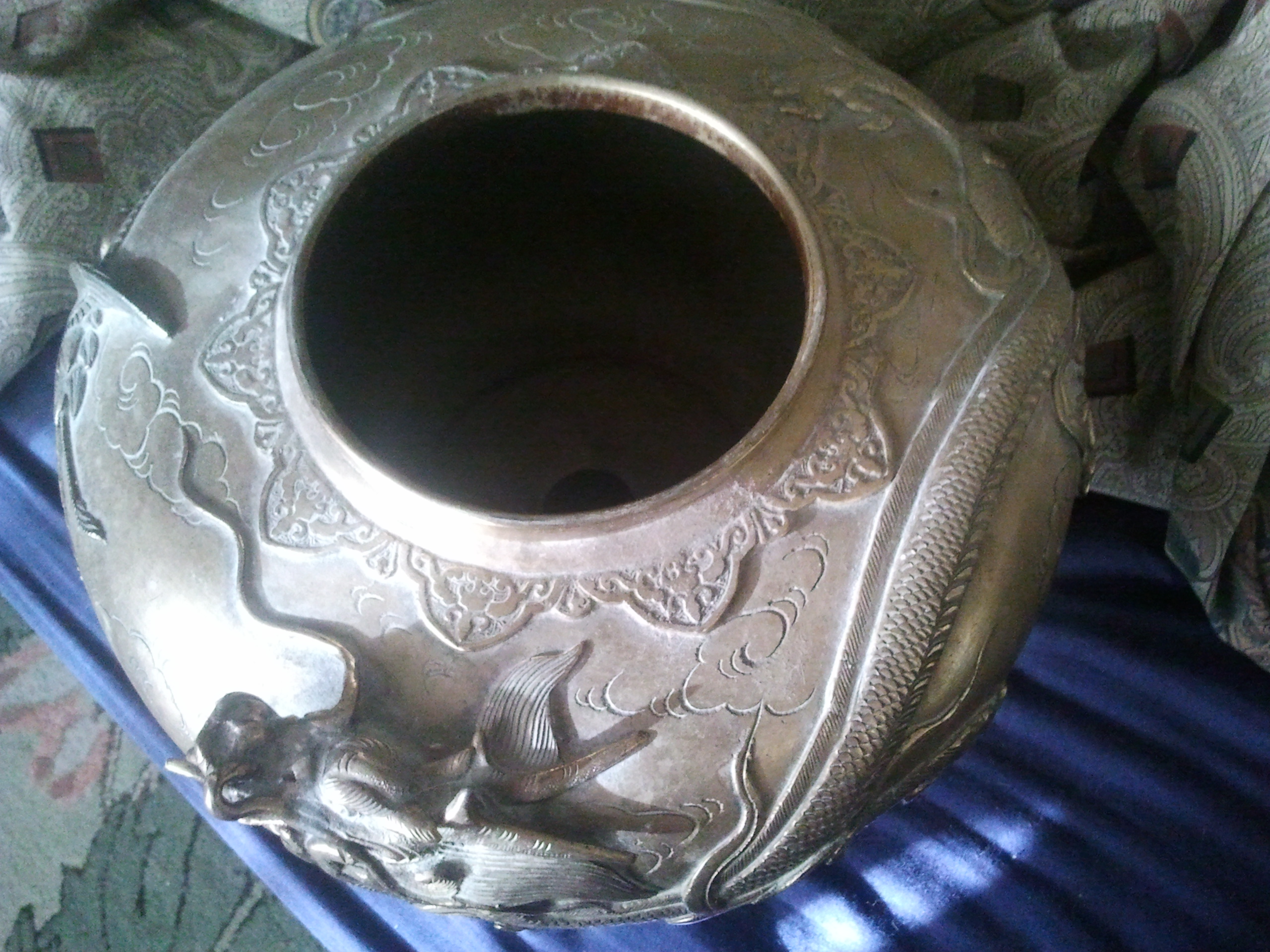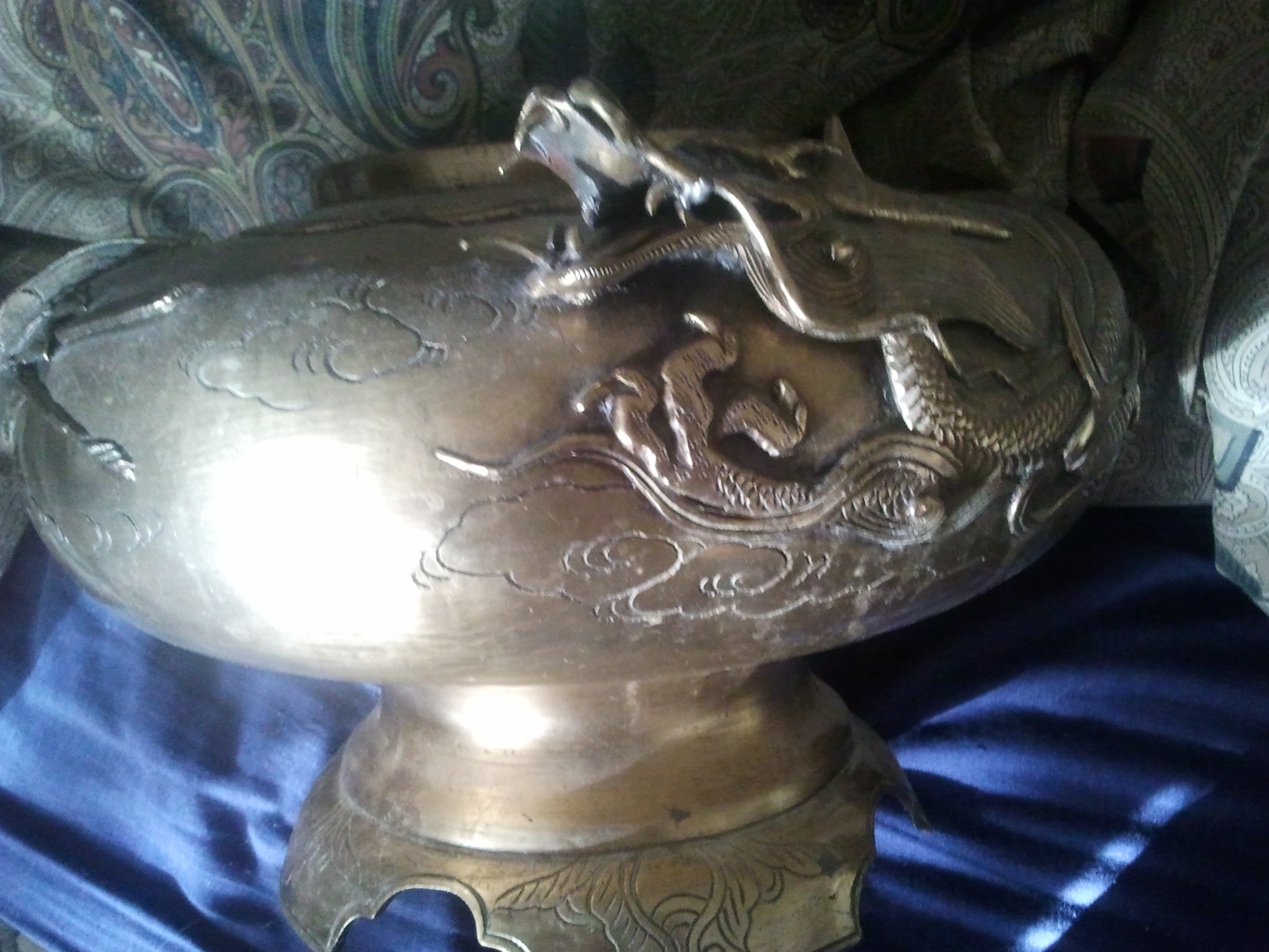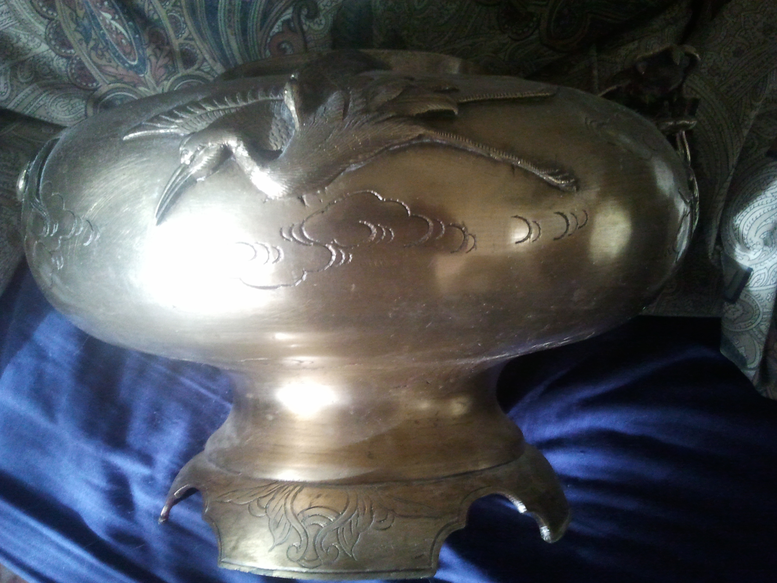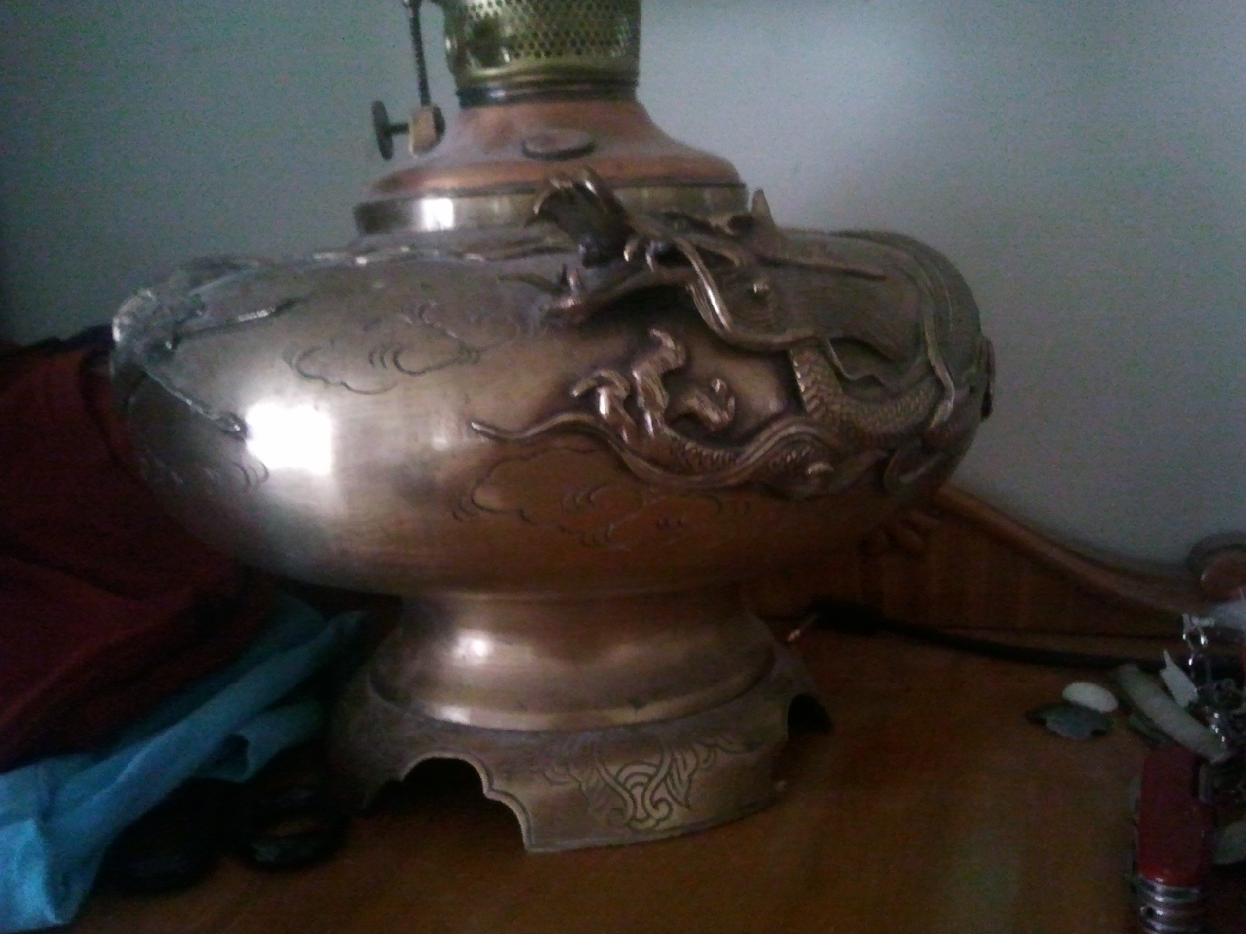 Brass lamp, not original glass chimney or globe. Someone said French copy of oriental lamp. Attaching photos.