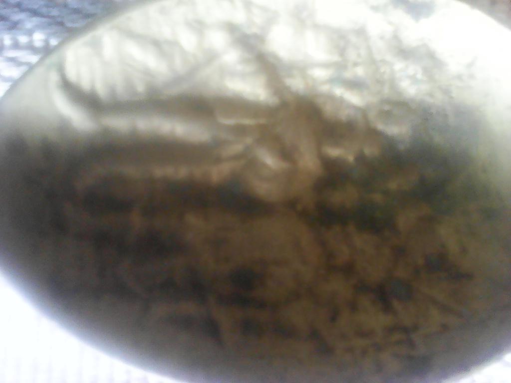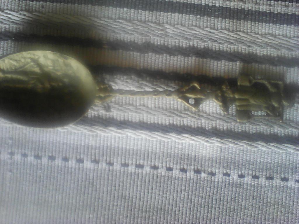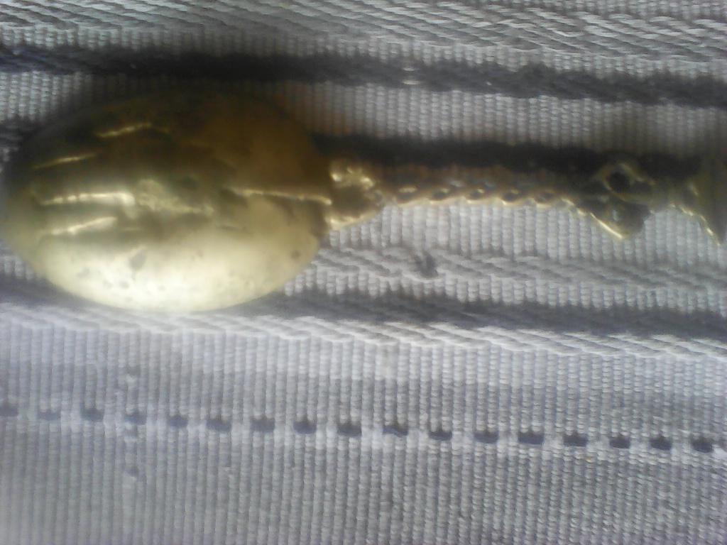 Antique brass or copper spoon made in St Petersburg no date only letters STPB on bank of handle .