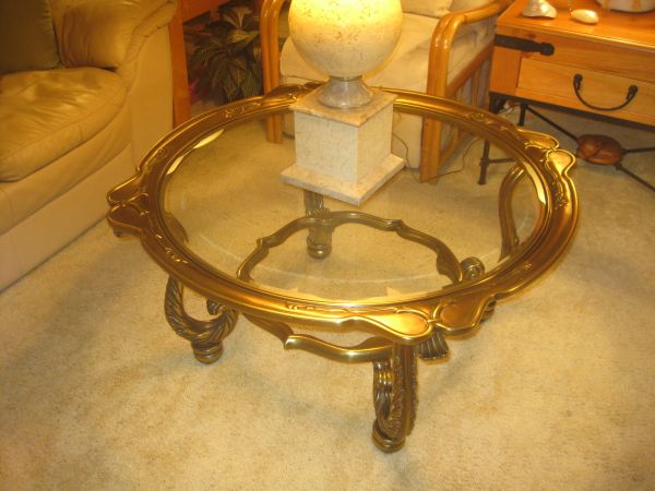 It's solid or cast brass with a inset glass top.The pie crust rim is seamless and very thick.It varies from 3" to 5" in width and is 2 1/4" thick with a triple layer.It has Chippendale style legs and Lion's claw feet.The detail in the metal work is as nice as i've ever seen.It's been made to look antique and I used 1950 to 1980 to try and date this but I have a feeling it could be older.I've looked everywhere on-line and can't find a table like this anywhere and am hoping you can help me.Thank You