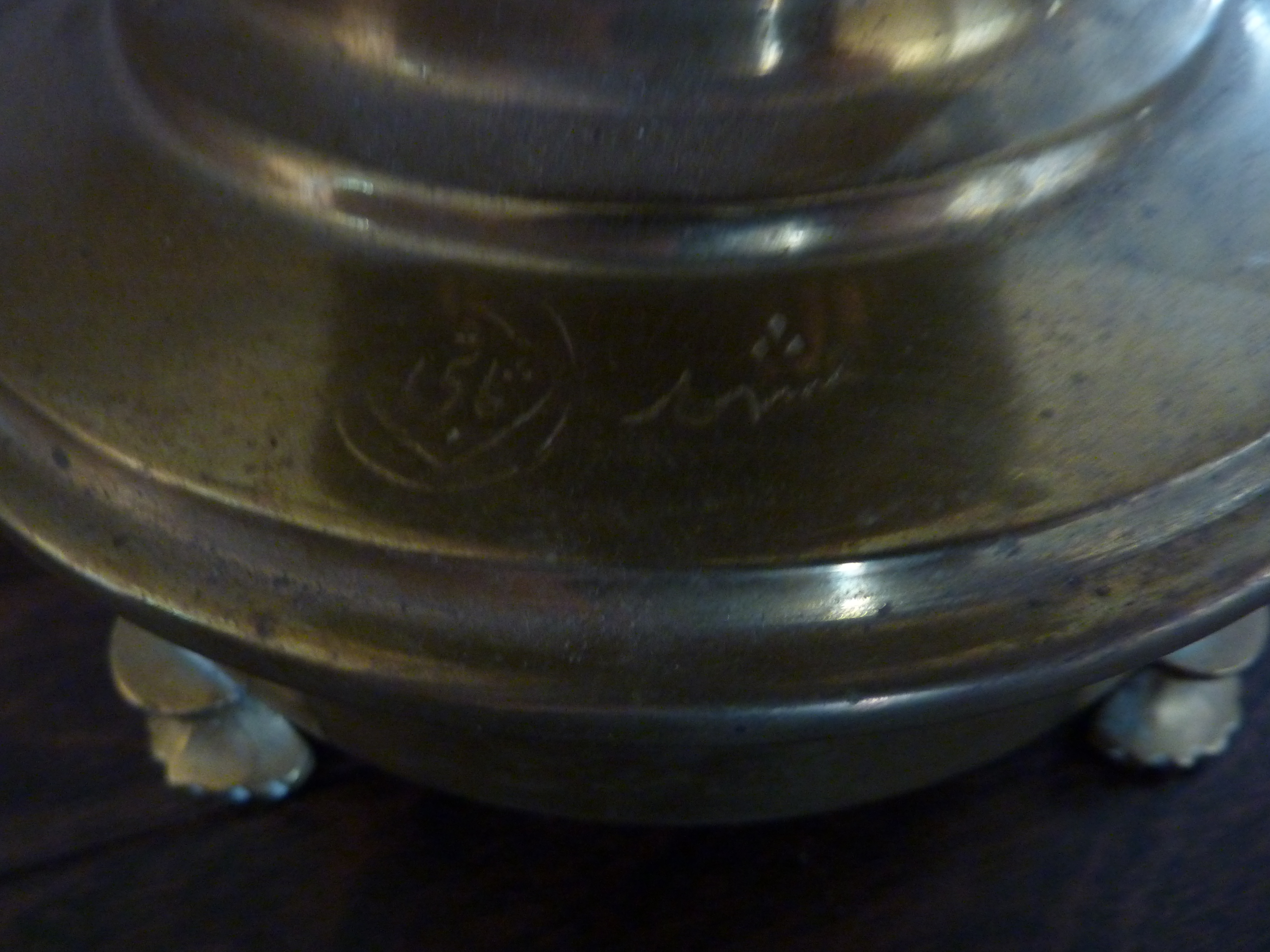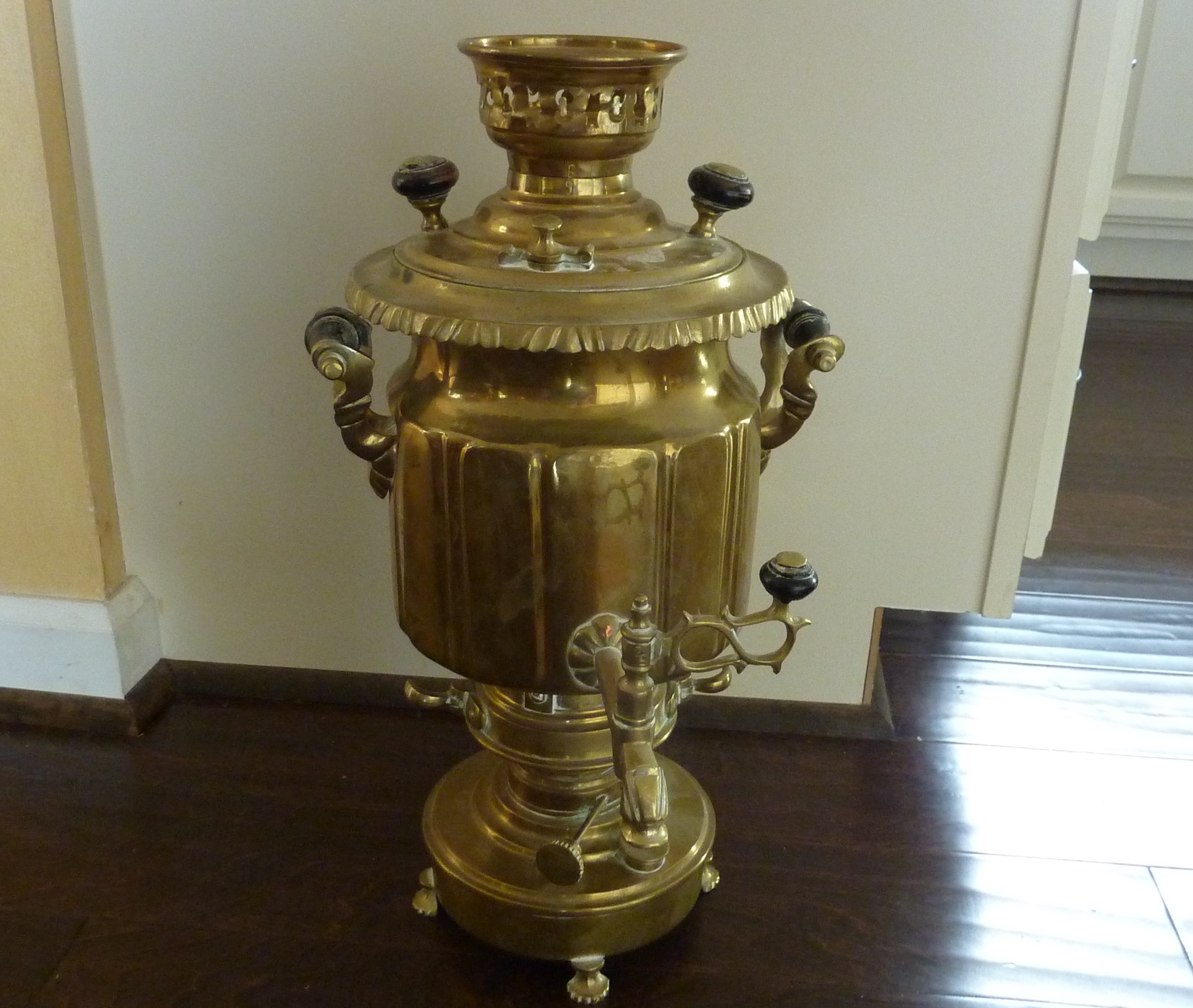 This is a Brass Samovar and I would like to find out who created it. It is numbered and signed as shown in the first picture. There are what appears to be three tear drops carved above the signature. Anyone know who made this and what it is worth? Thanks so much for your help!!!