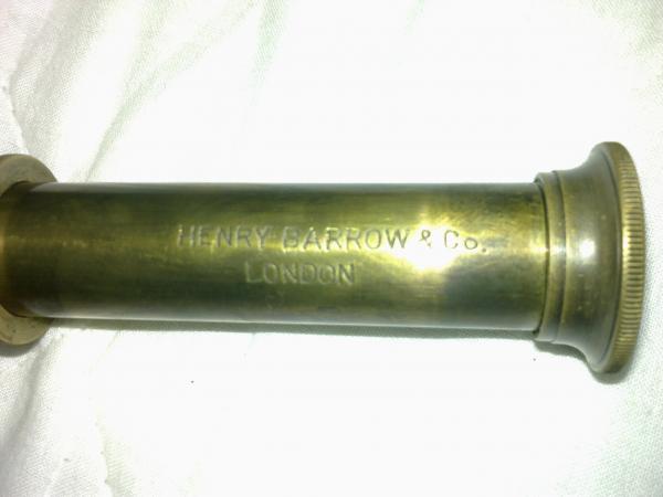 The Item has Henry Barrow ingraved on the Telescope and on the outside of the box. Henry Barrow, England/London. I have had this for a few years now, Was Handed down to me as a Good freind was collecting old stuff, Now I have it to sell. So i did a search on him and looks like this is from the 1800's.