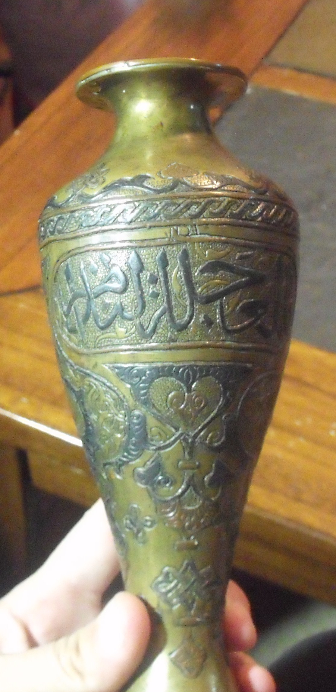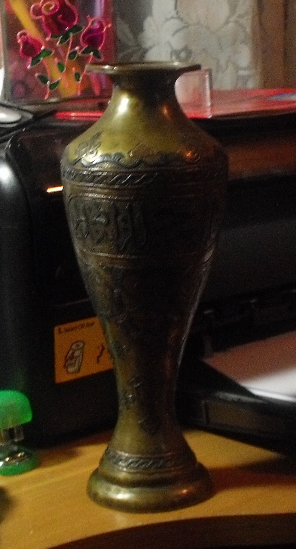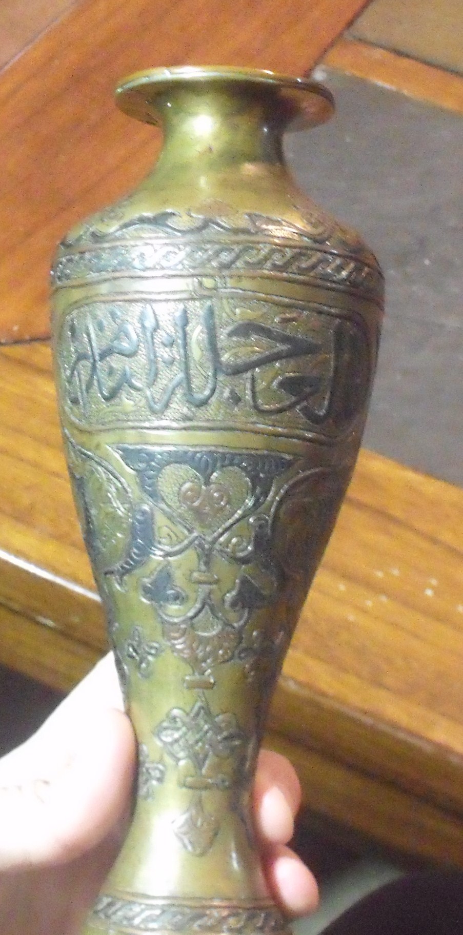 It's brass and has  fouren wrighting on it and has lots of great desine on it , I know nothing about it and would love to know about it and if it is worth any thing..... Thank you...