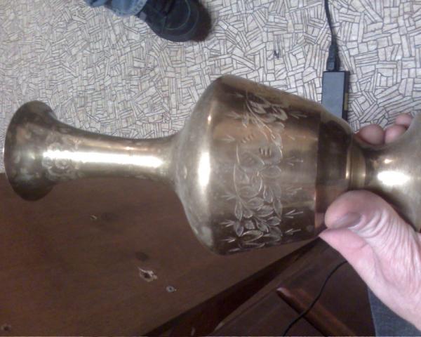 Brass vase. Designs all around the top, middle and bottom of engraved flowers and stems. Imprinted on the bottom is the word India and the year looks like 4 88 or 86. Was found in basement with 3 others of different sizes. Owned by my stepmother who passed away 6 years ago.