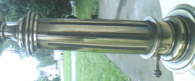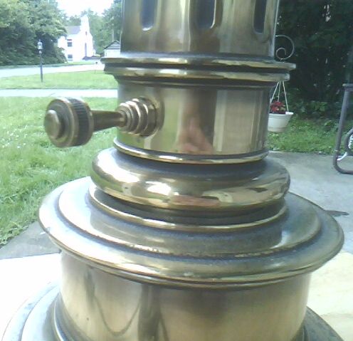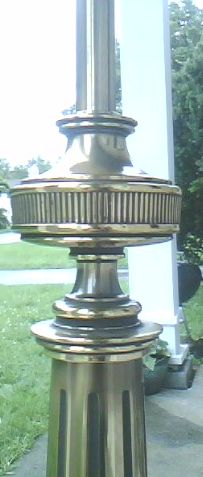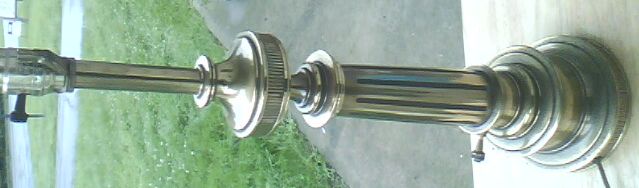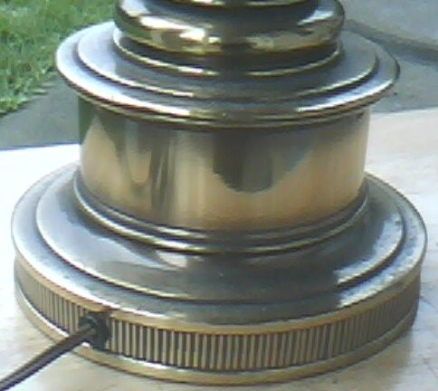 Don't know much about this lamp. Has Stiffel on the socket, but that could mean the socket came from a Stiffel lamp. It has black stripes and brass as you can see. The switch near the base matches the decor, which is rather unique in my opinion; as mostly I see the usual switch designs.