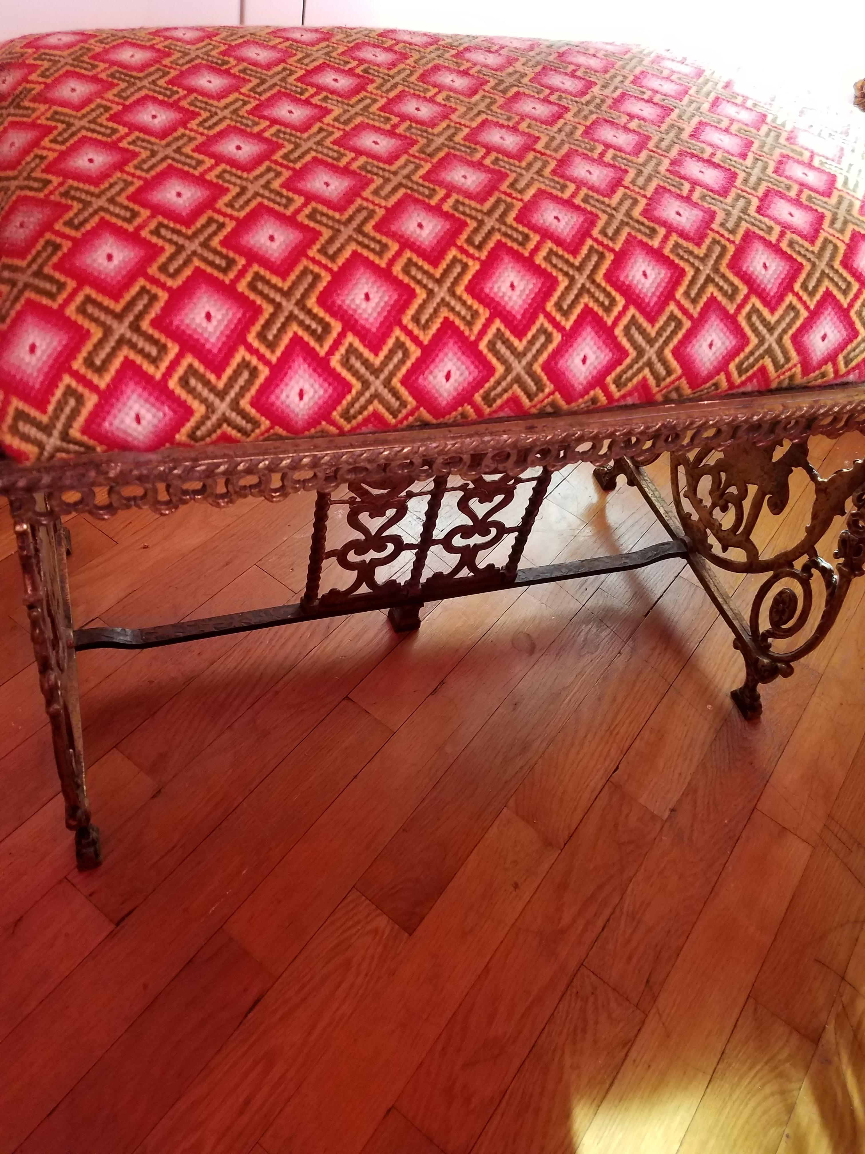 I have had this brass/iron, very heavy vanity bench for eight years now. I originally found sitting near a dumpster in good condition. I said to myself, why would someone throw out such a nice piece. It was so unique and expensive looking that even I refused to utilize it. To me, it looks like it was created many years ago and it is extremely heavy. I have kept it sitting in one of my rooms all this time and was wondering about its value. Just want to know about its history and value (if any). Curious minds, need to know. Thanks a bunch.