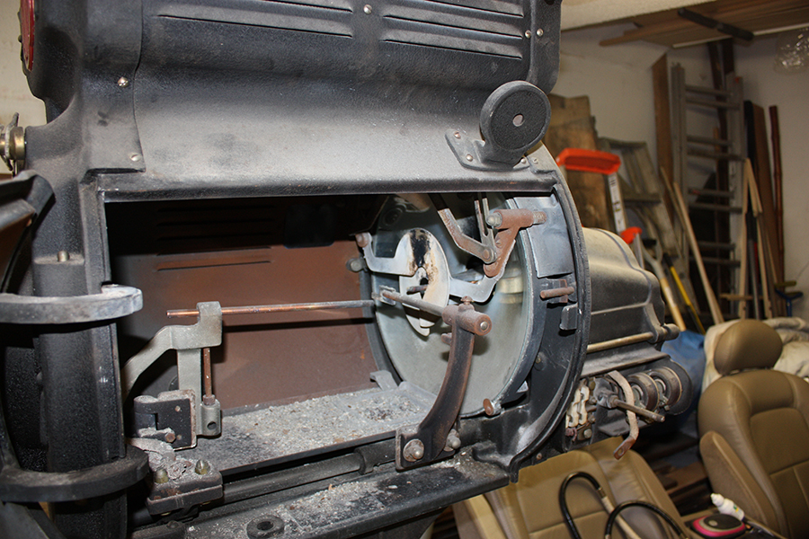 History This movie projector was salvaged from a movie theater in Kansas City.