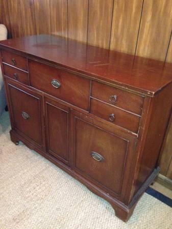 I wanted to see what the value might be for this Brickwede Buffet. I can't make out too much info on the back. It does have a sliverware tray in the top drawer. There are condition issues with this piece, scraches and one of the door sticks. It does have wheels hidded behind the legs and the wheels themselves are made of wood. I wanted to paint this piece but if it is of any value I would like to just sell it.