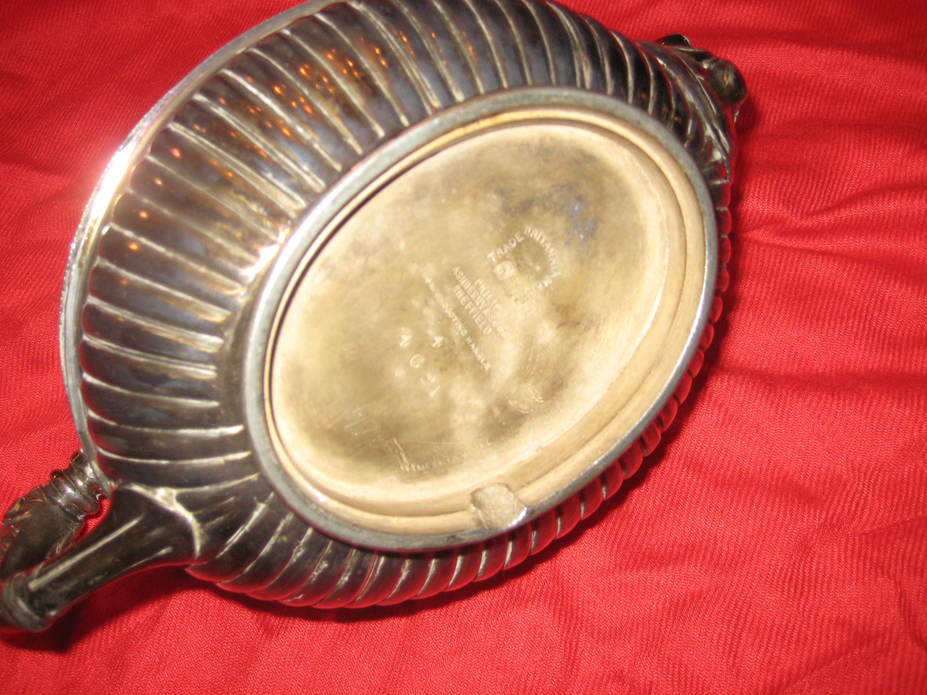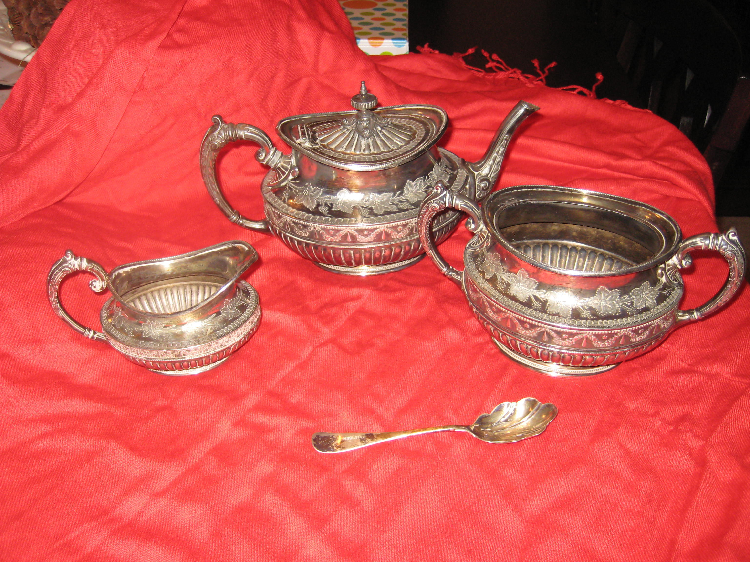There are three pieces to the silver teapot set. On the bottom of it says Sheffield Phillip Ashbury and sons.