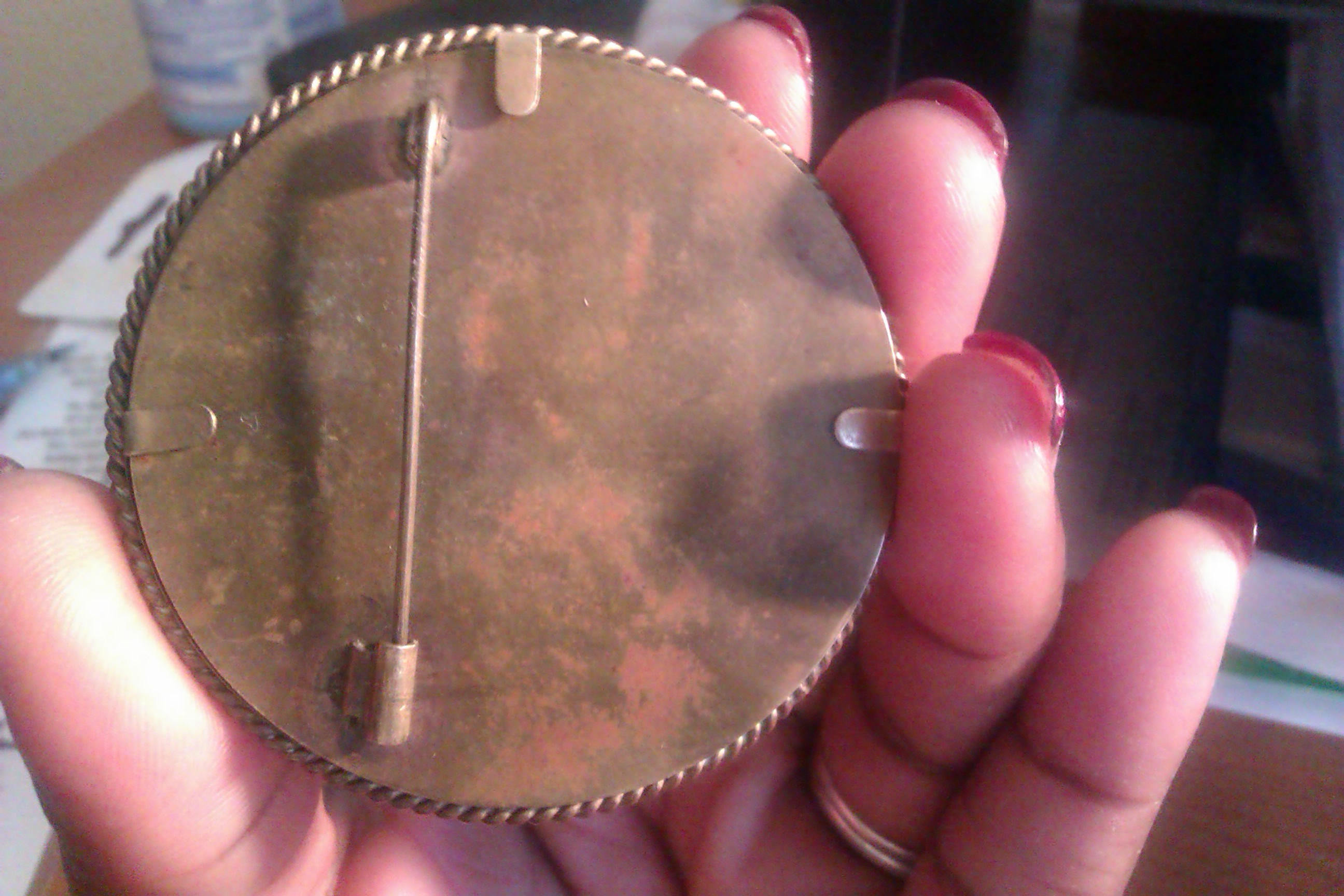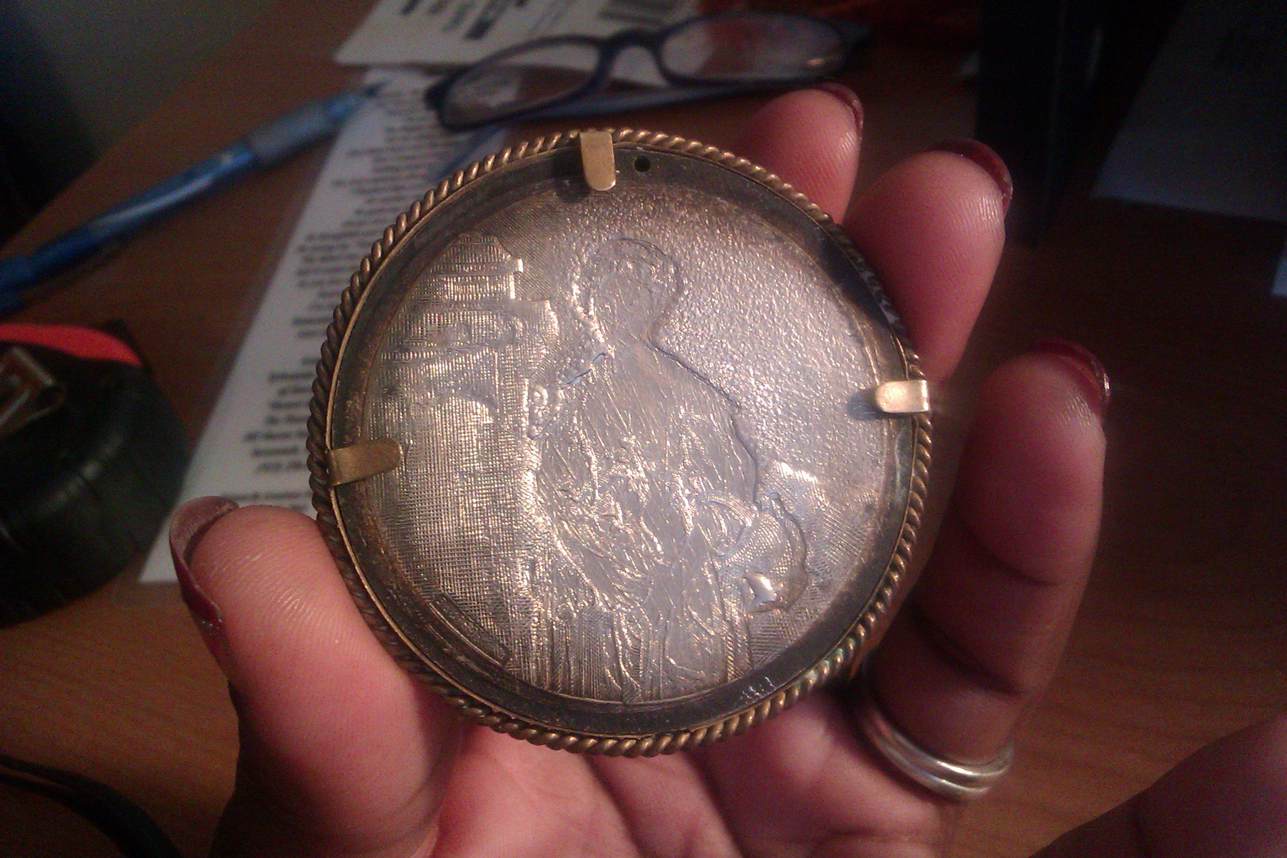 This pen was given to my mother by my grand mother more than 30 years ago and it was given to her by a family that she worked for. I've found that it is a miniature of Jean-Baptiste Greuze's portrait "The Broken Jug" which was painted between 1772-1773. I've seen brooch's in color but none like this.  We've been curious about it for years and wonder of it's value; and how old it may be. We would like legitimate appraisals for a potential sale.