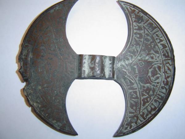 My Grandfather went back to Hungary in the early 1960's to visit family. I believe it was his cousin was working in his field digging or plowing and came across this and gave it to my grandfather as a gift. We believe it may have belong to one of Hannibals soldiers due to it being made of Bronze and it having several pictures of Elephants on it. There is writing on it, it is writing i have never seen before.
